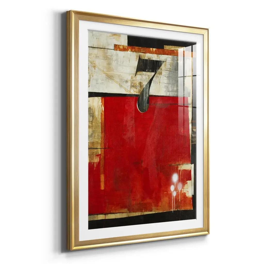 Lucky No. 7 Premium Framed Print - Ready to Hang A Premium Framed Print created to last. Framed in distressed wood and available in an array of sizes and colors Featuring a beveled a solid wood stretcher bar, each piece comes ready to hand 4 SIZES AVAILABLE 30.5''X42.5'' - Overall Size 26.5'X36.5'' - Overall Size 22.5''x30.5'' - Overall Size 18.5''x24.5'' - Overall Size Each piece is made to order. Each piece comes with hanging hardware. Made in the USA Ready to Hang Giclee Paper Print Acrylic Glass Beveled Matt Board