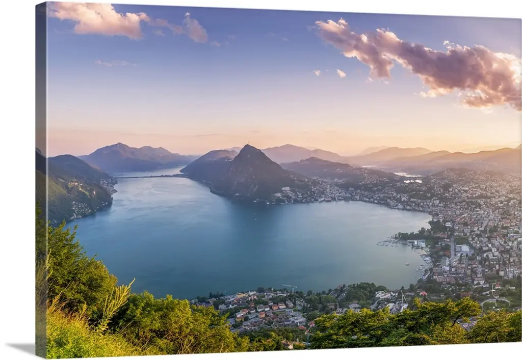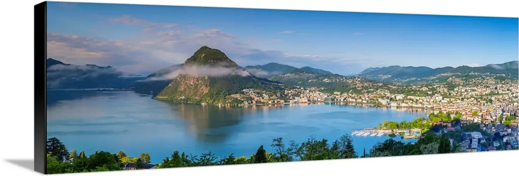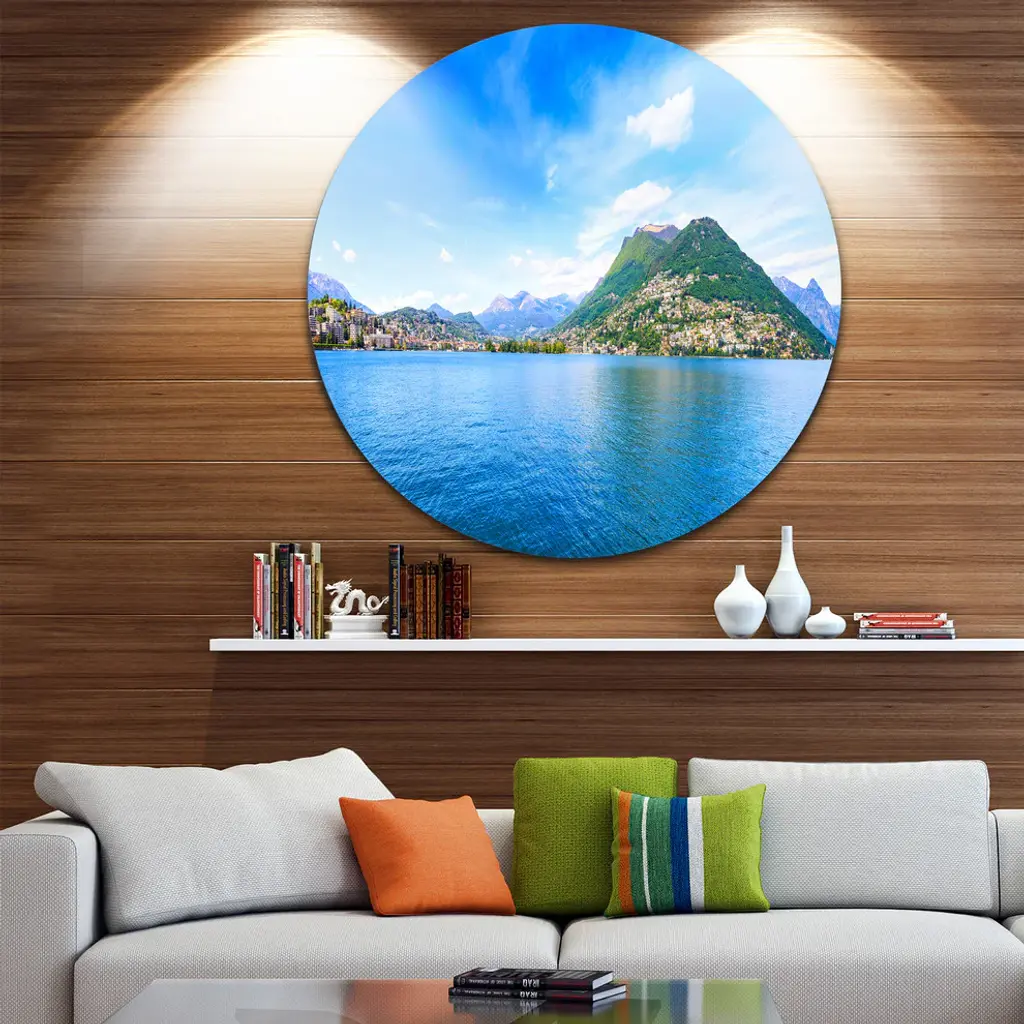 Lugano Lake Ticino Panorama, Seashore Round Wall Art, 36"