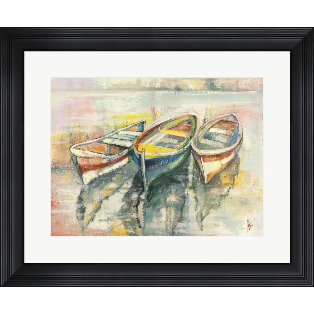 Barche all'ormeggio by Luigi Florio is a high quality piece of framed artwork. The finished size of this piece is 26" X 21.5". It has a Contemporary Stepped Solid Black with Satin Finish frame, is single matted and finished with high quality Acrylic Plexiglass. 100% Satisfaction Guaranteed.