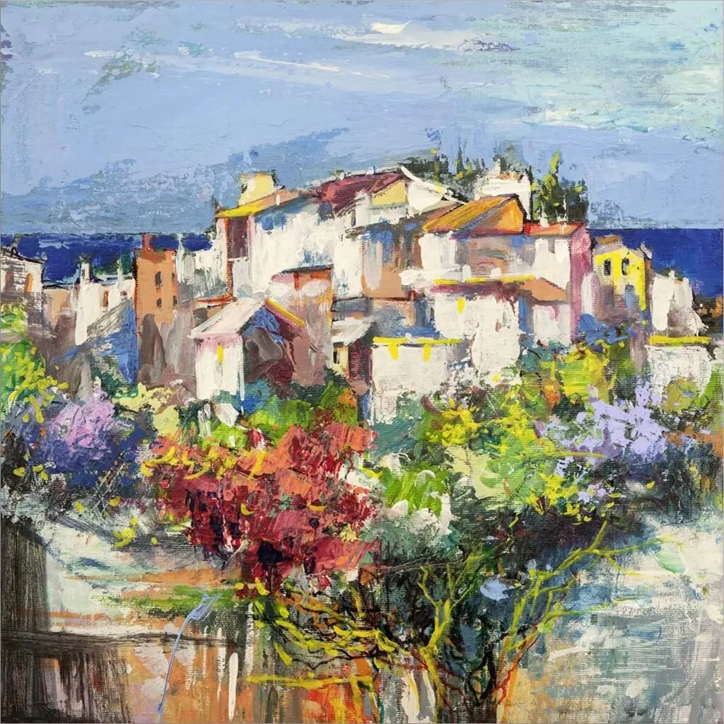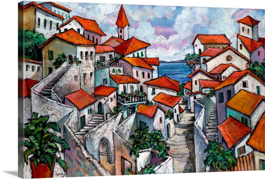 Borgo sul Mare II by Luigi Florio is a high quality piece of canvas artwork. The finished size of this piece is 24" X 24", and it has a depth 1.5". There is a UV protective coating over the entire image, and it is ready to hang on your wall with a standard drywall screw (not included). 100% Satisfaction Guaranteed.
