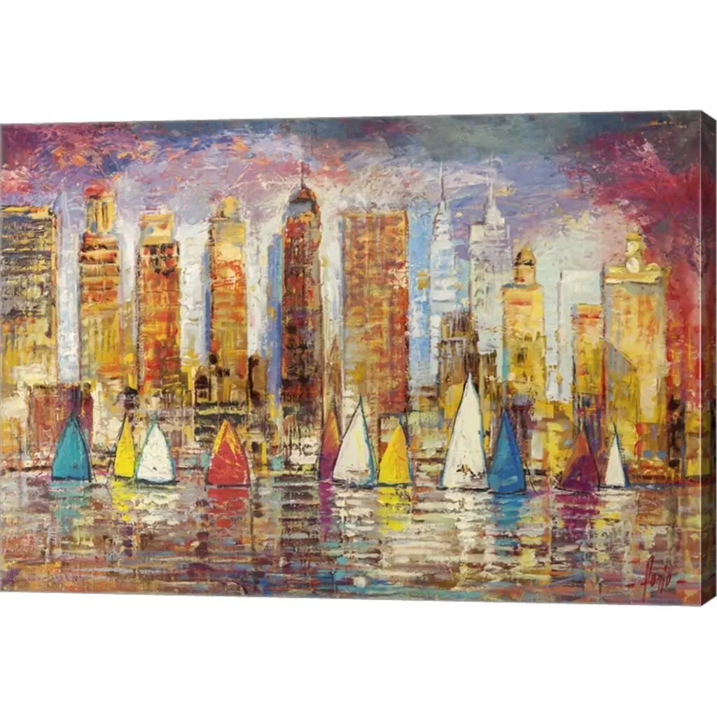 Vele a New York by Luigi Florio is a high quality piece of canvas artwork. The finished size of this piece is 39.5" X 28", and it has a depth 1.5". There is a UV protective coating over the entire image, and it is ready to hang on your wall with no hardware required. 100% Satisfaction Guaranteed.