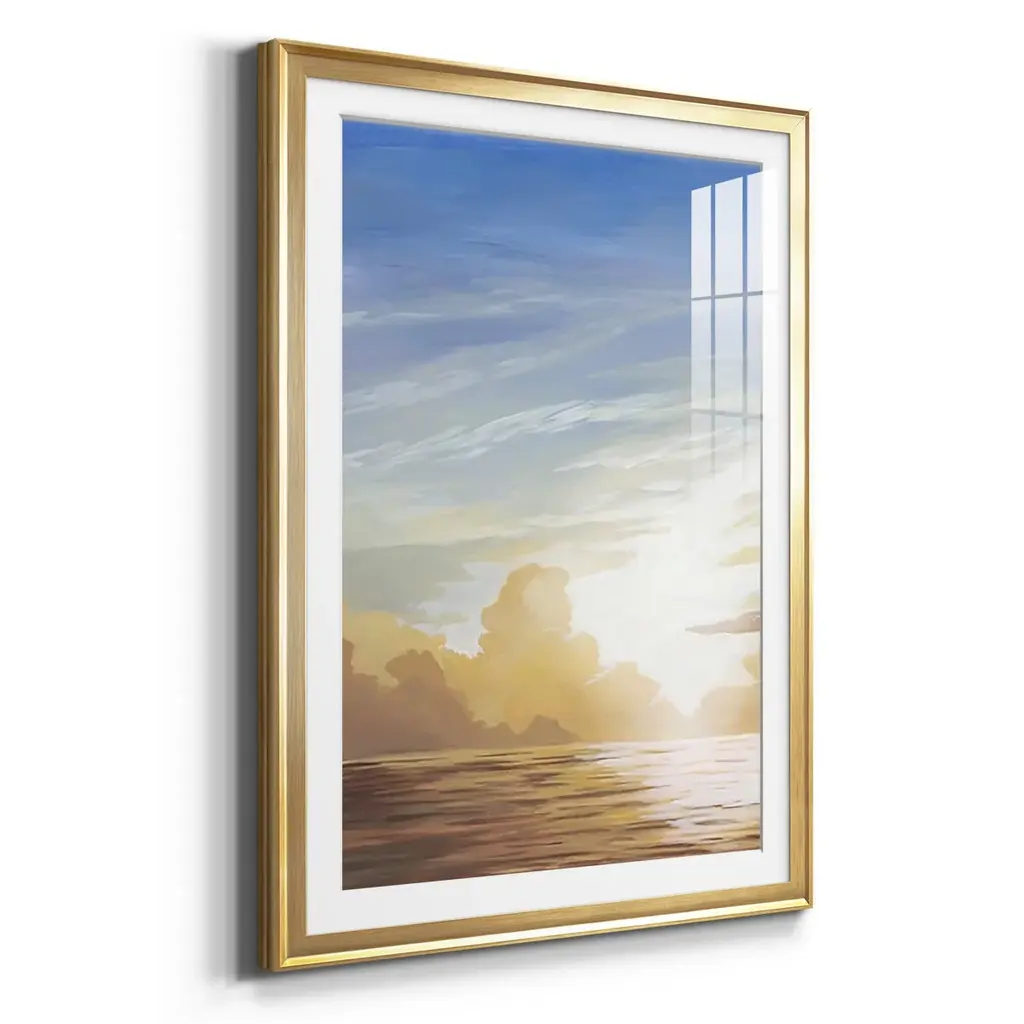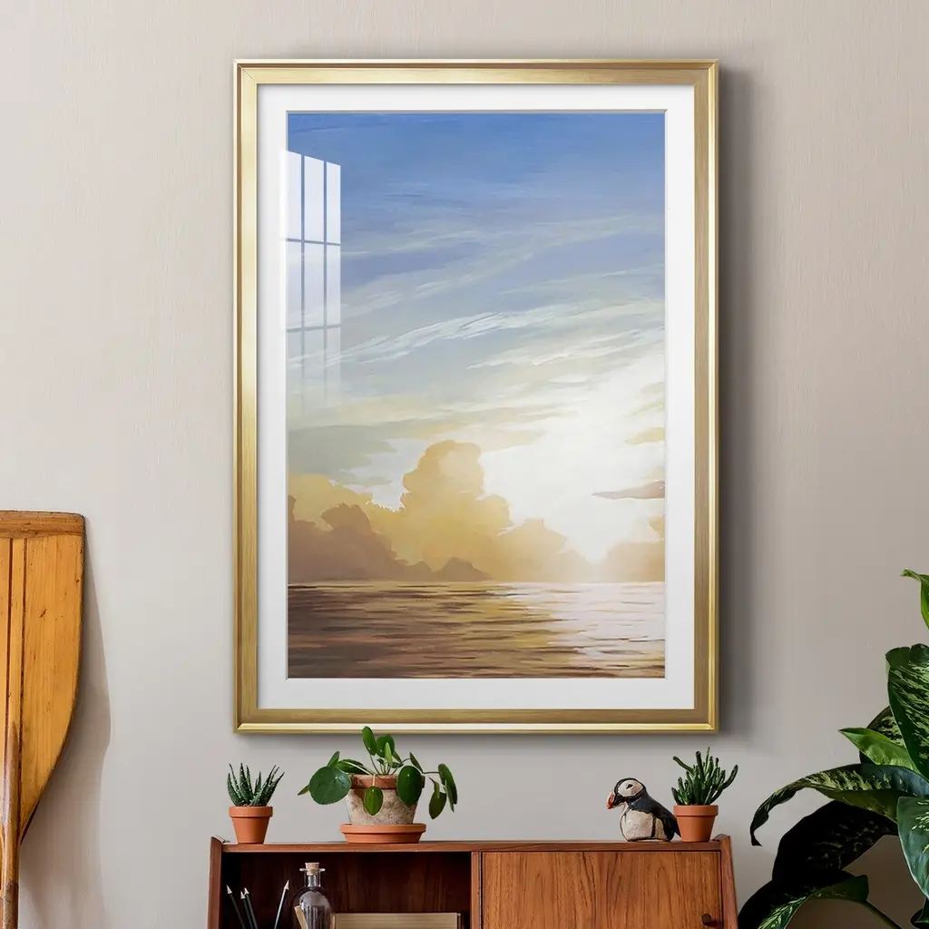 Luminous Waters I Premium Framed Print - Ready to Hang A Premium Framed Print created to last. Framed in distressed wood and available in an array of sizes and colors Featuring a beveled a solid wood stretcher bar, each piece comes ready to hand 4 SIZES AVAILABLE 30.5''X42.5'' - Overall Size 26.5'X36.5'' - Overall Size 22.5''x30.5'' - Overall Size 18.5''x24.5'' - Overall Size Each piece is made to order. Each piece comes with hanging hardware. Made in the USA Ready to Hang Giclee Paper Print Acrylic Glass Beveled Matt Board