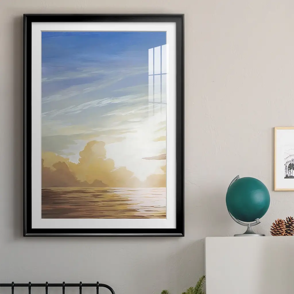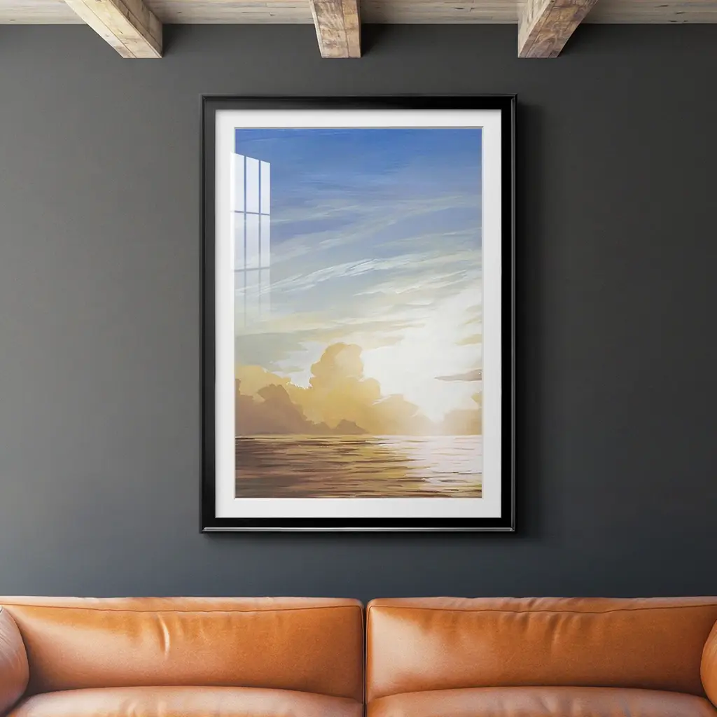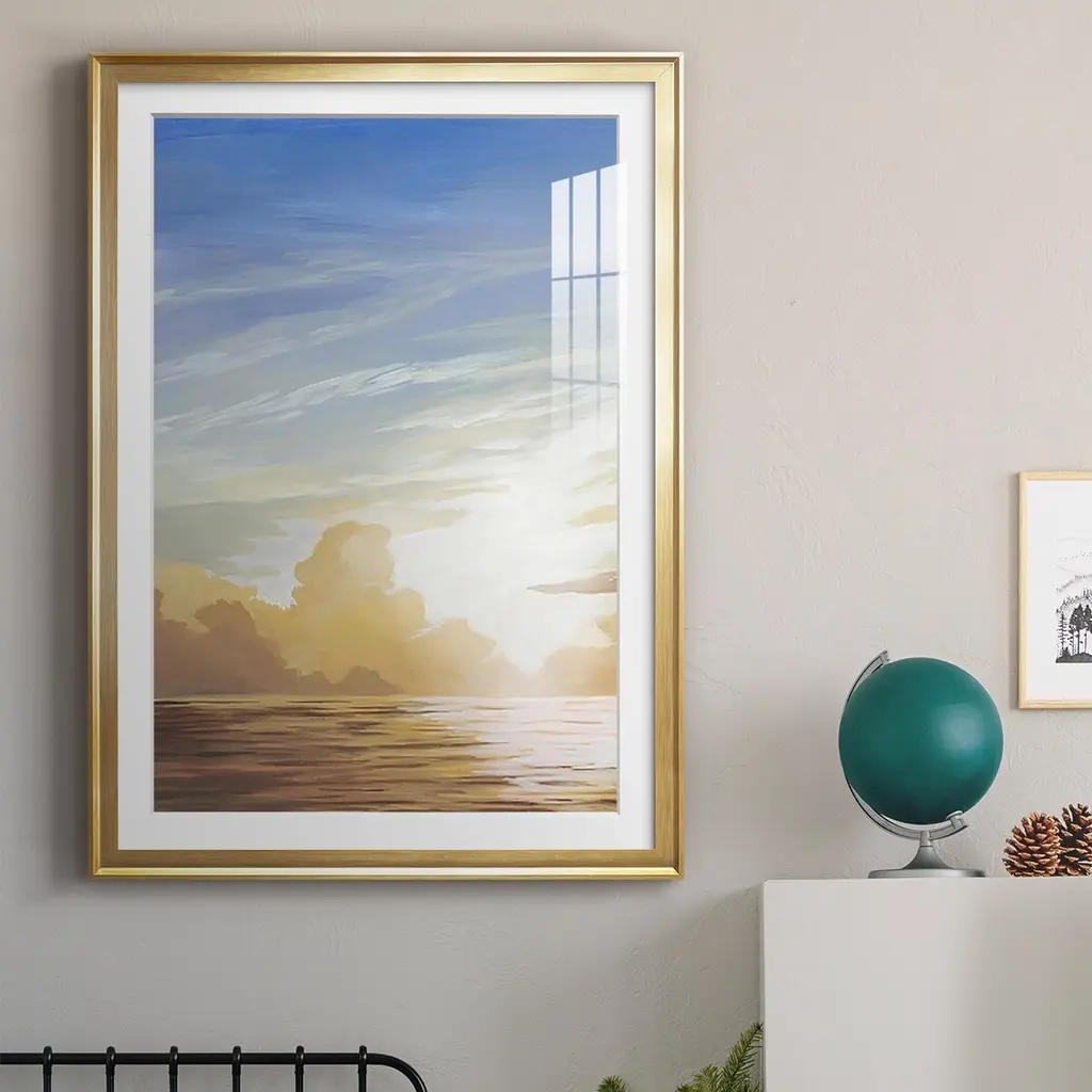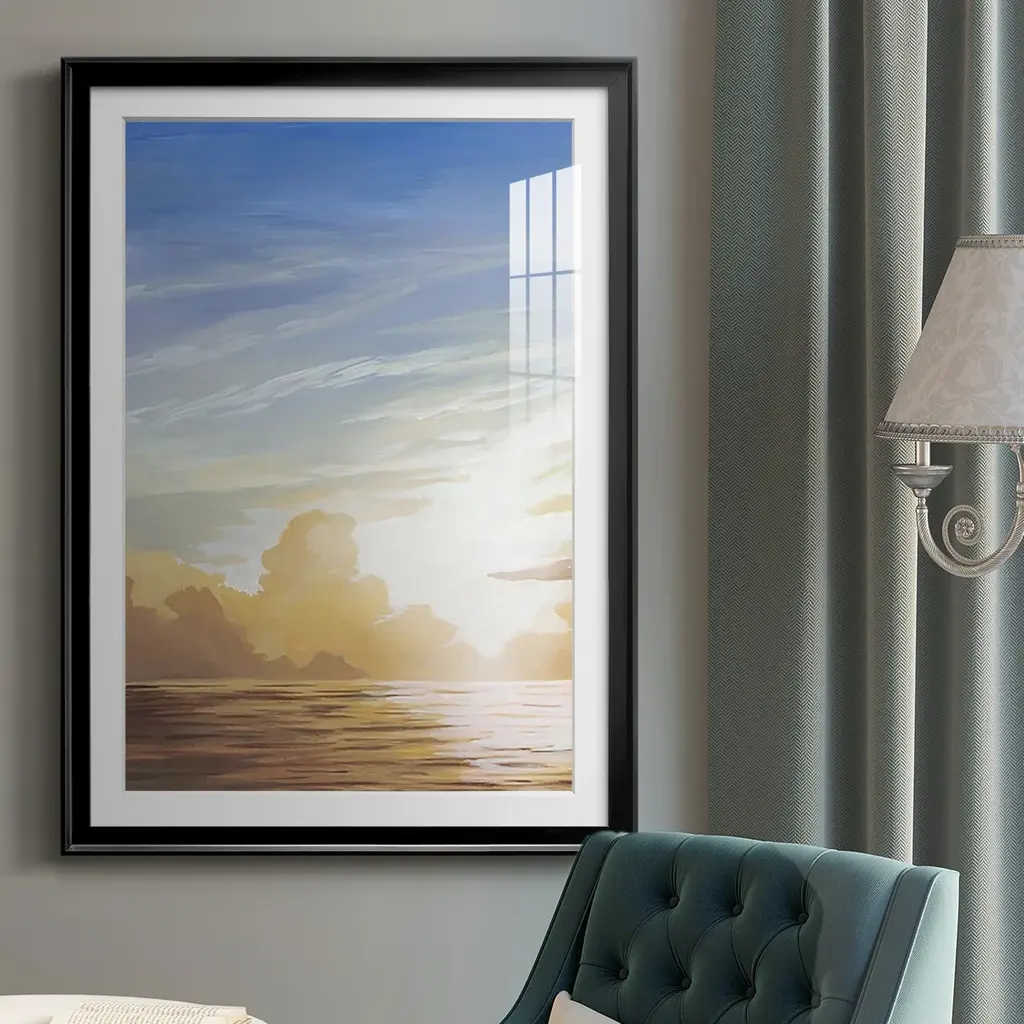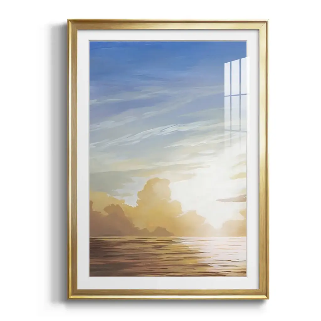 Luminous Waters I Premium Framed Print - Ready to Hang A Premium Framed Print created to last. Framed in distressed wood and available in an array of sizes and colors Featuring a beveled a solid wood stretcher bar, each piece comes ready to hand 4 SIZES AVAILABLE 30.5''X42.5'' - Overall Size 26.5'X36.5'' - Overall Size 22.5''x30.5'' - Overall Size 18.5''x24.5'' - Overall Size Each piece is made to order. Each piece comes with hanging hardware. Made in the USA Ready to Hang Giclee Paper Print Acrylic Glass Beveled Matt Board