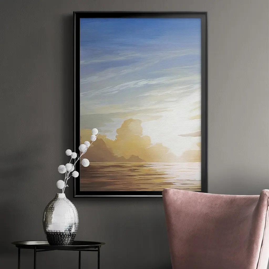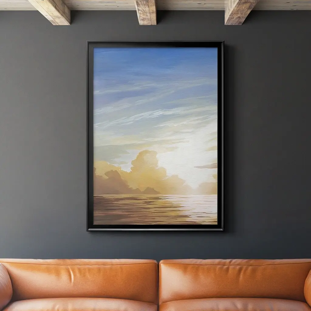 Luminous Waters I Premium Framed Print - Ready to Hang A Premium Framed Print created to last. Framed in distressed wood and available in an array of sizes and colors Featuring a beveled a solid wood stretcher bar, each piece comes ready to hand 4 SIZES AVAILABLE 30.5''X42.5'' - Overall Size 26.5'X36.5'' - Overall Size 22.5''x30.5'' - Overall Size 18.5''x24.5'' - Overall Size Each piece is made to order. Each piece comes with hanging hardware. Made in the USA Ready to Hang