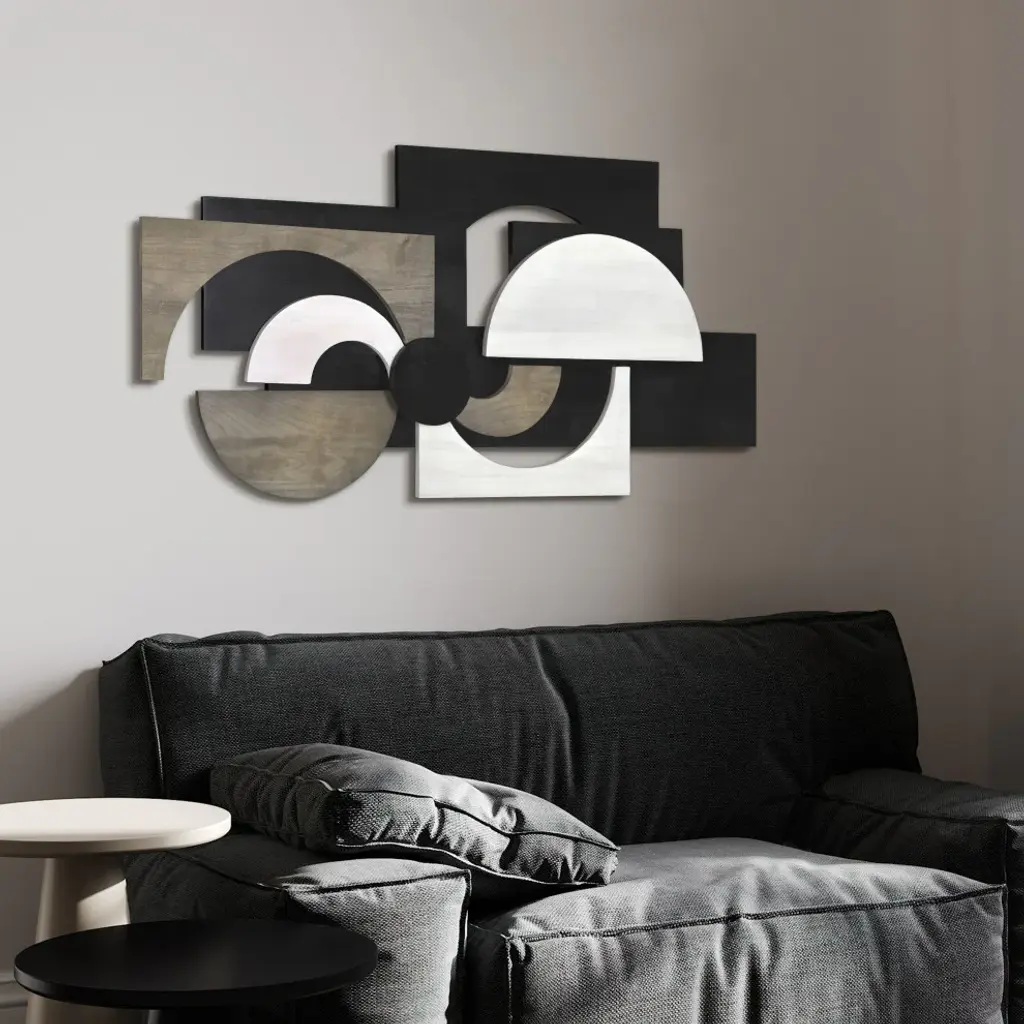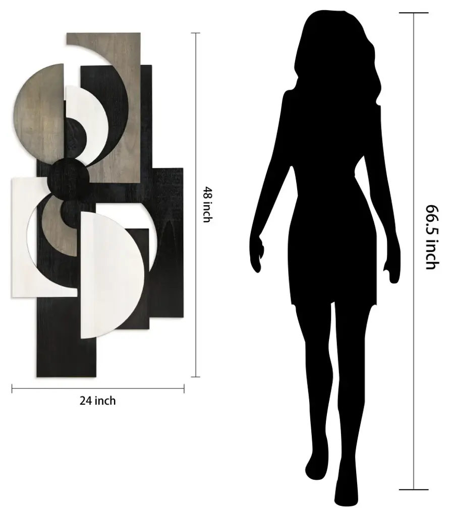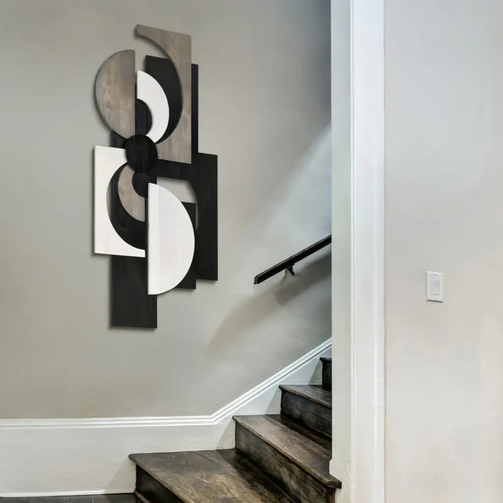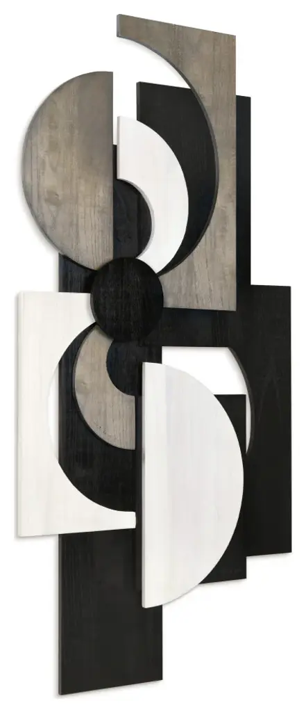 This stunning rectangular abstract wall sculpture is a masterpiece, crafted from the finest solid paulownia wood and imbued with a sense of passion and romance. The wood pieces are arranged in a mosaic-like pattern, each one carefully chosen for its unique shape and color, mixing alabaster, ebony and charcoal gray to add depth and nuance to the sculpture, creating a sense of mystery and intrigue, as the artist Jane Yu intended before laser engraving her signature on it. This sculpture is a true work of art, one that is sure to capture the heart of the beholder, whether is hunged horizontally or vertically, and more so if paired with "Luminous Whisper" to make a real statement of art. Please note that since these abstracts are made from real solid wood, the colors and patterns will be unique in each sculpture. Therefore, the image shown may be slightly different from the actual artwork.
