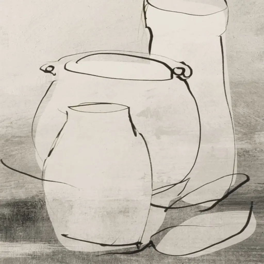 With a penchant for modern minimalism, artist Dan Hobday evokes images of a comforting kitchen. Textured paper with a deckled edge is float mounted on a white backer for extra dimension.
