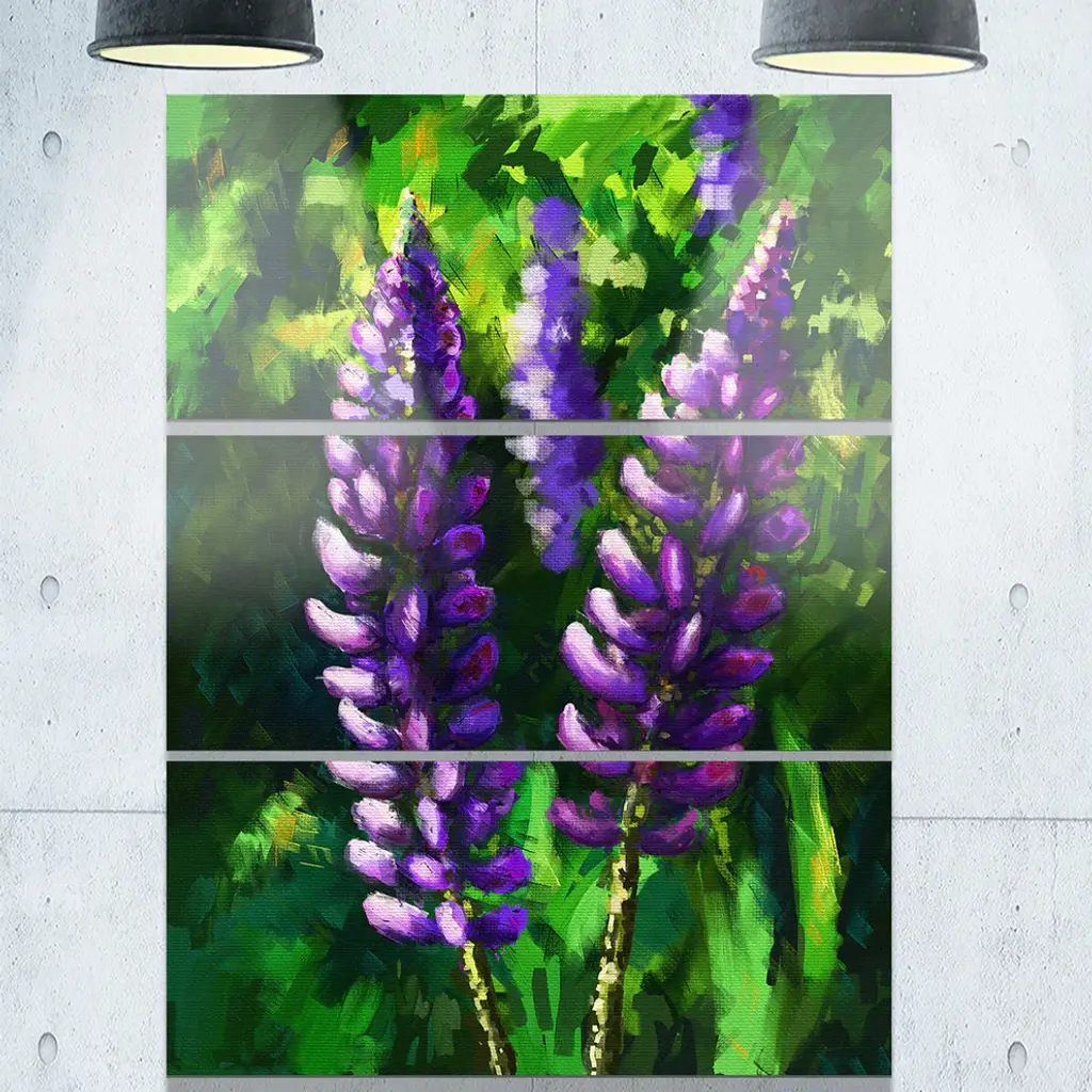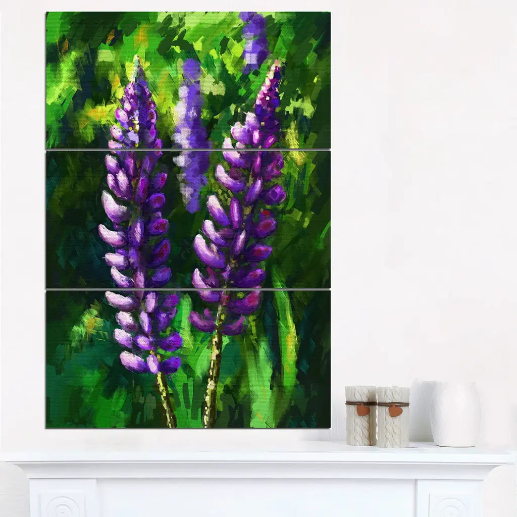 "Lupin Flowers" Glossy Metal Wall Art, 3 Panels, 28"x36"