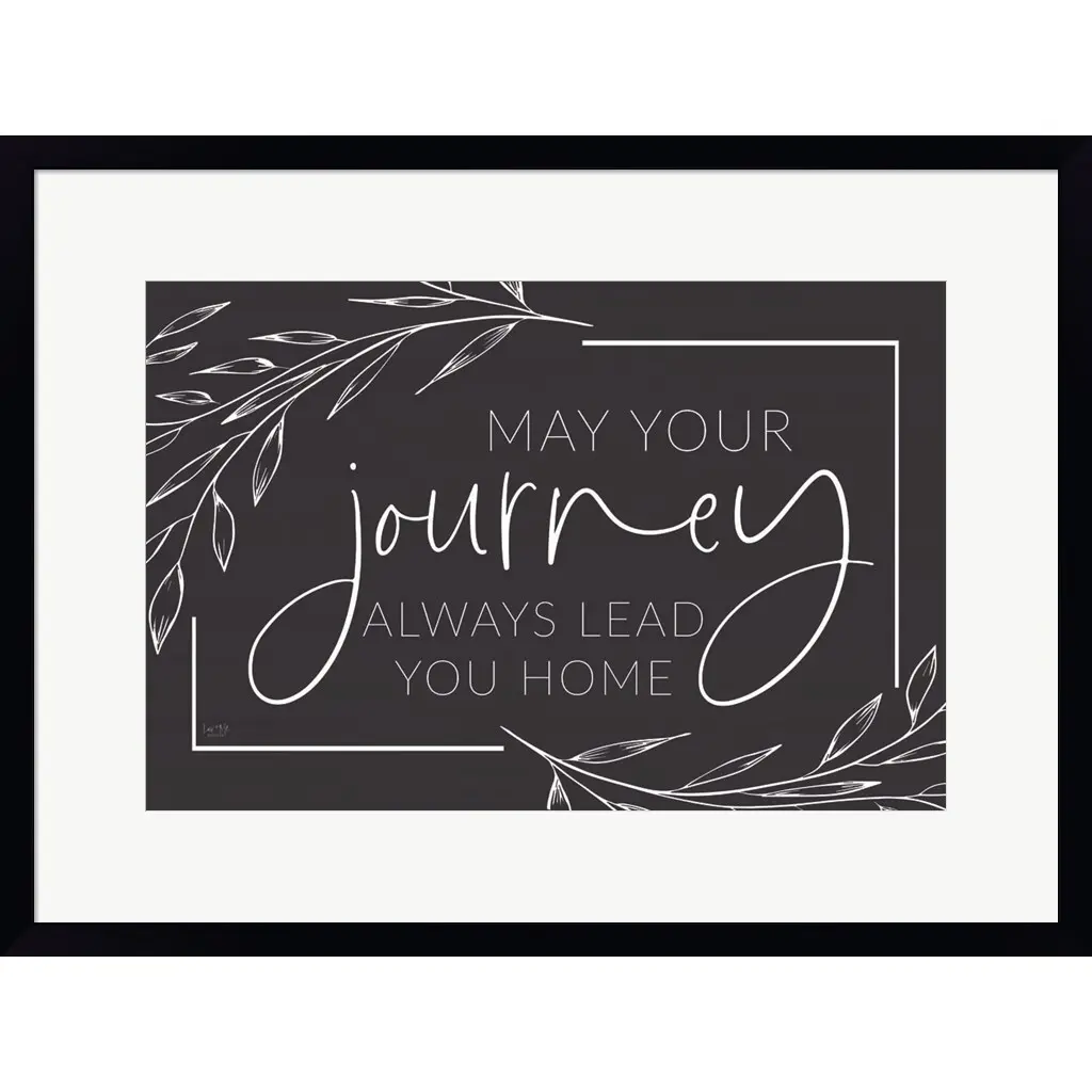 May Your Journey Lead Home by Lux + Me Designs is a high quality piece of framed artwork. The finished size of this piece is 24" X 18". It has a Petite Black with Flat Front frame, is single matted and finished with high quality Acrylic Plexiglass. 100% Satisfaction Guaranteed.