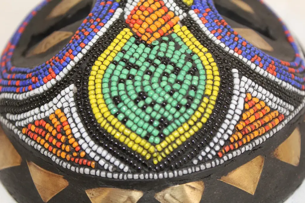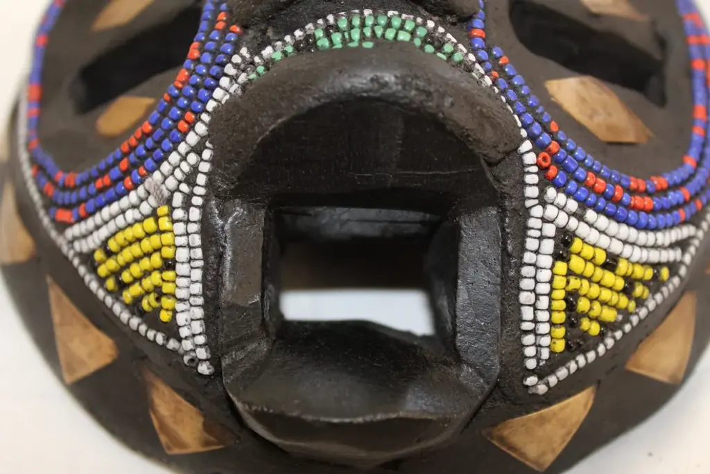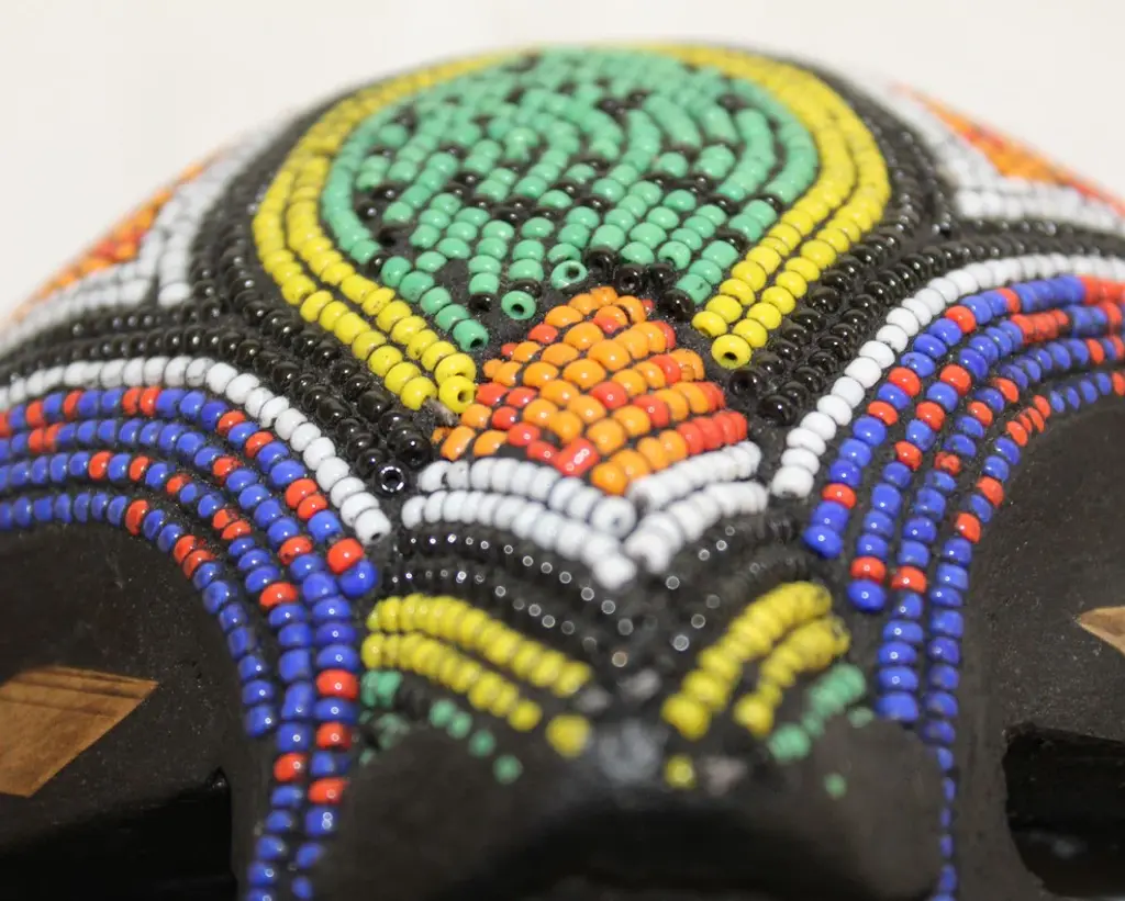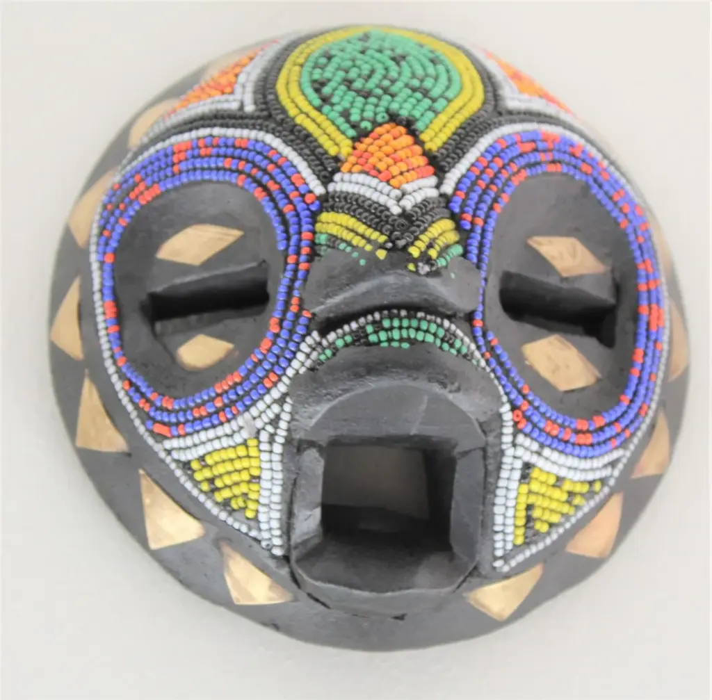 Luxe Beaded African Mask Wall Art | Wood Colorful Round 6" Tribal Sculpture Sun