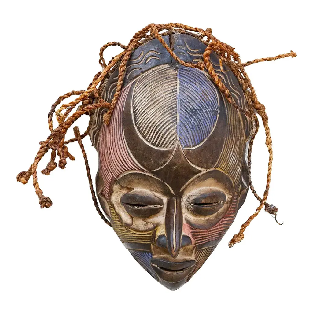 Each of our stunning "Ilanga" masks is hand made in Ghana. Traditionally used by native tribes to express love and beauty, each mask is a one-of-a-kind work of art. Each is hand carved from rubber wood and adorned with gleaming brass, aluminum, and colorful beads for a beautiful, authentic work of art. The outer brass triangles burst forth like rays of sunlight, and the convex shape of the mask adds depth and rich elegance. Use them individually, or group them for a truly showstopping display.• 5.7" dia 2.8" deep• Hand Carved African Hardwood, Metal, and Beads• Hanging hardware attached. Larger size available separately.• Heirloom Quality - Expertly hand crafted and hand finished. Due to the hand crafted nature of this piece, each piece may have subtle differences.• Themba is the Zulu word for "Hope", and each item in this collection is handcrafted by artisans in Africa as a sustainable way to support their family and community. Each is responsibly and sustainably sourced at a living wage from African craftsmen. Our masks are hand carved by traditional artists in Ghana, and each is completely hand beaded. Because of the genuinely handcrafted nature of each piece, no two are exactly alike, and minor imperfections are part of the authentic nature of these non-manufactured items.