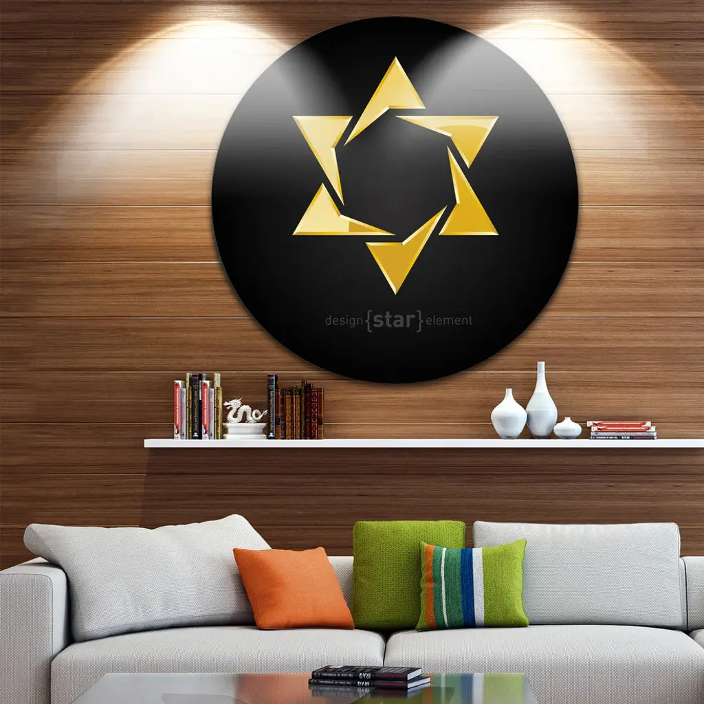 Luxury Golden Star, Modern Digital Large Disc Metal Wall Art, 38"