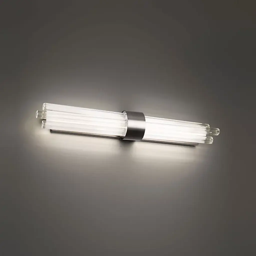 A piece that gets you to stop and stare even with the lights off. There's no easy way of peeling your eyes off the beautiful bundle of glass that is the Luzerne LED Vanity Light from Modern Forms. This versatile piece feels just as natural mounted on top of your mirrors as it does on the sides. An aluminum structure reigns the piece in with sleekness you could feel. Clear fluted glass elements give off a sculptural look as they bundle together. When you turn on the ACLED light source, the tubes create a stunning prismatic effect. The light shines and tapers through the glass for a clean, uniform glow.