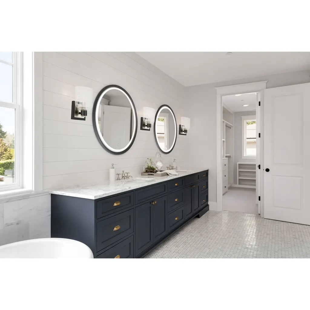 The "Lydon Collection" of bathroom vanities is slick and clean - a perfect compliment to any environment that is modern to transitional. The clear glassware has circular edges. The arms are finished in black while the accents are plated in nickel. Shown as a single sconce but also available in a 3 or 4 light version.