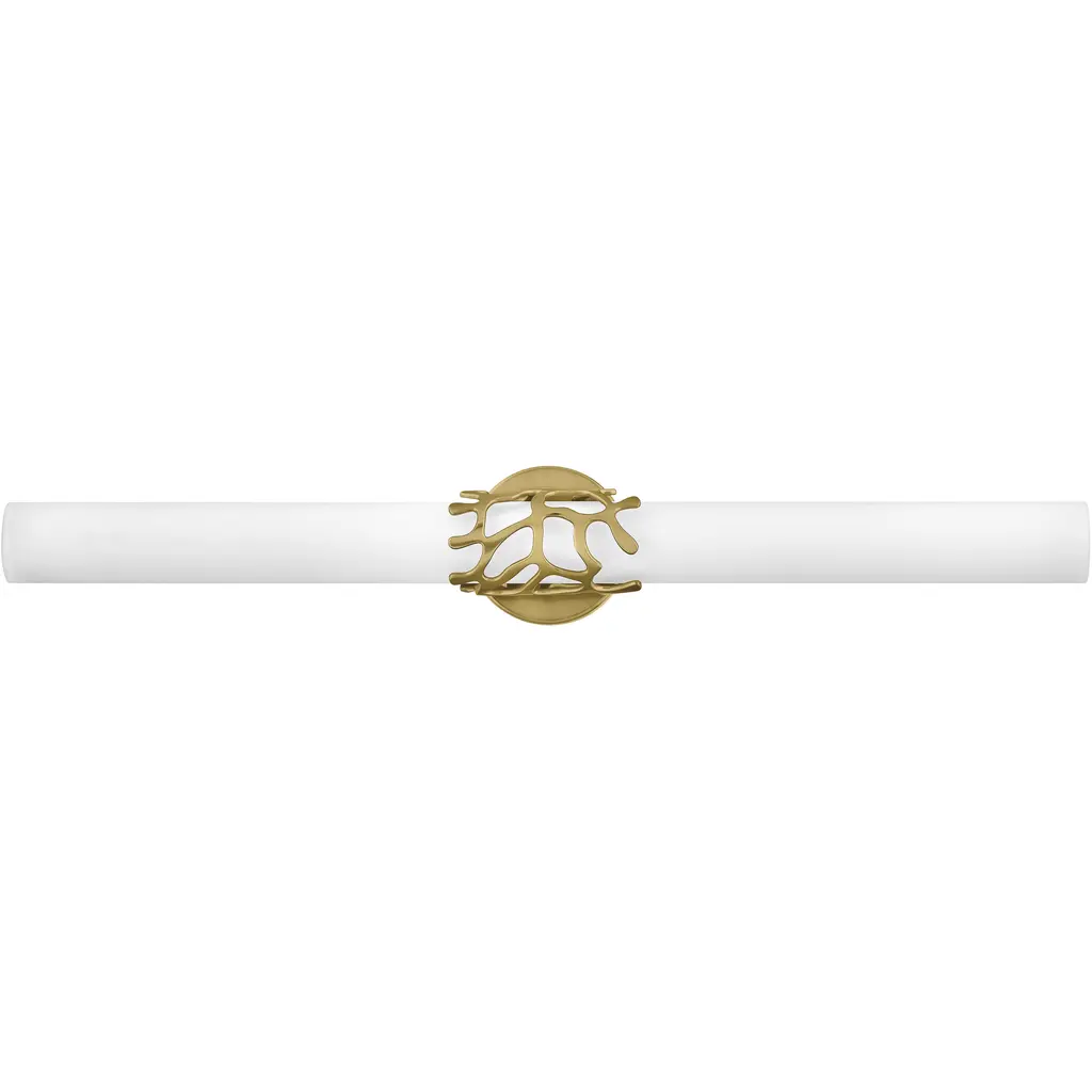 Modern yet timeless, the Lyra LED Vanity Light by Hinkley Lighting brings bright practical lighting to bathrooms with ease. This energy-efficient fixture includes an etched opal glass tube that extends from a central backplate. A die-cast metal accent is set at the center of the piece, expressing an abstract shape resembling ocean coral. This understated accent brings maritime flair to the piece while its simple and elegant design complements any interior décor.