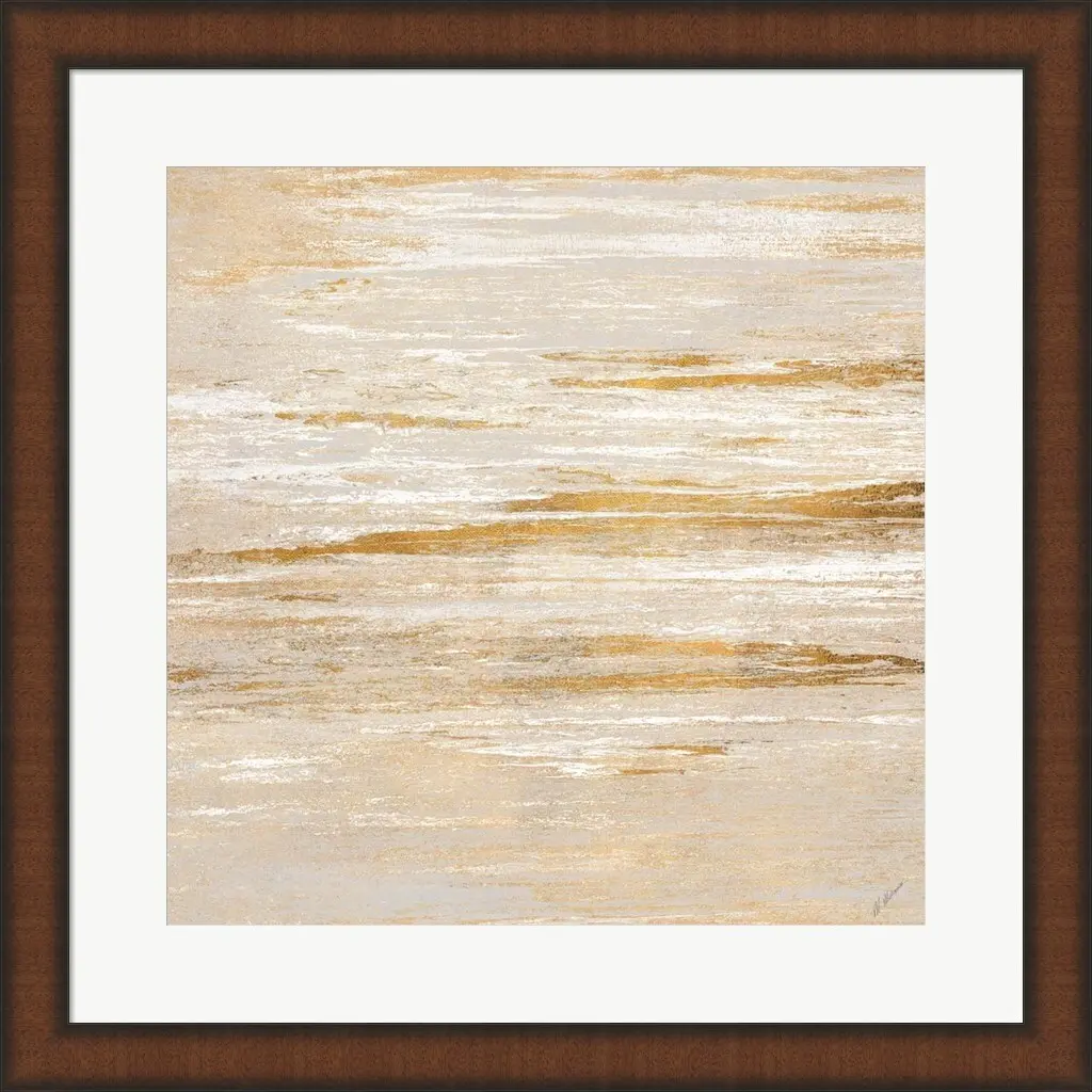 Gold Sunset by M. Mercado is a high quality piece of framed artwork. The finished size of this piece is 19.75" X 19.75" with an image size of 14" X 14". It has a Slim Teak Espresso Brown Edges frame with a 2" white mat and is finished with high quality Glass. 100% Satisfaction Guaranteed.