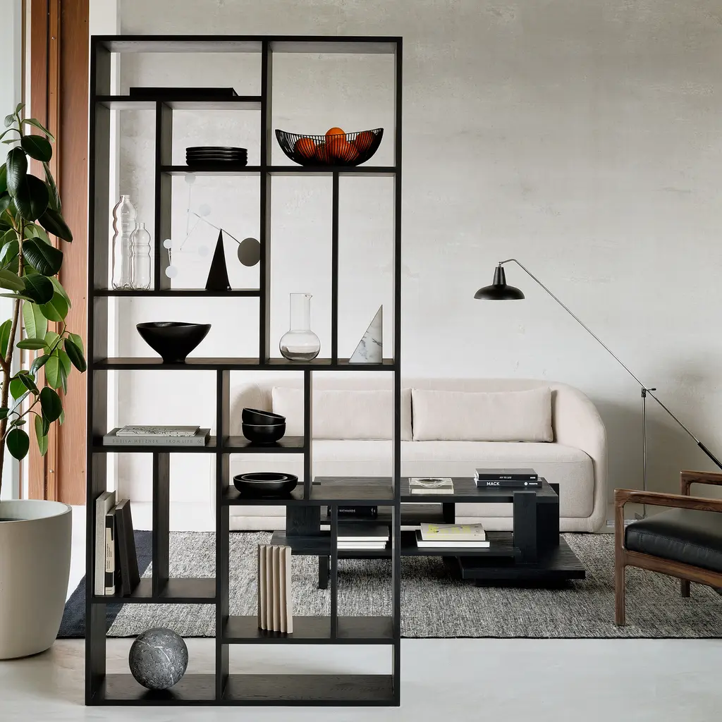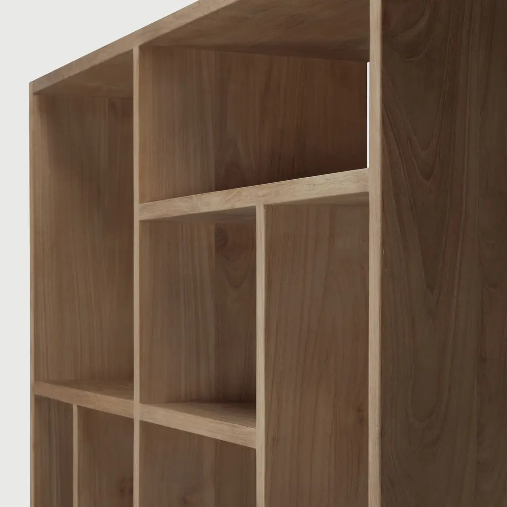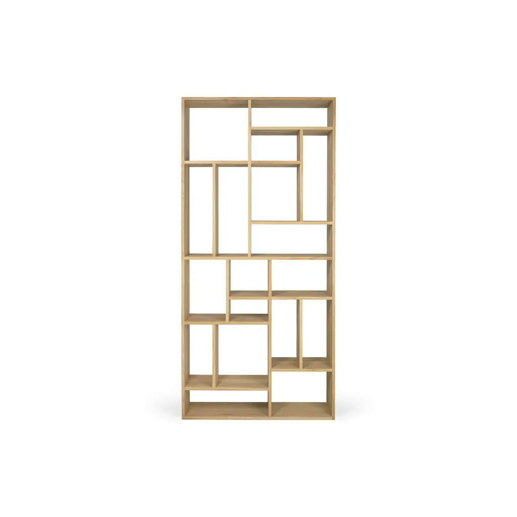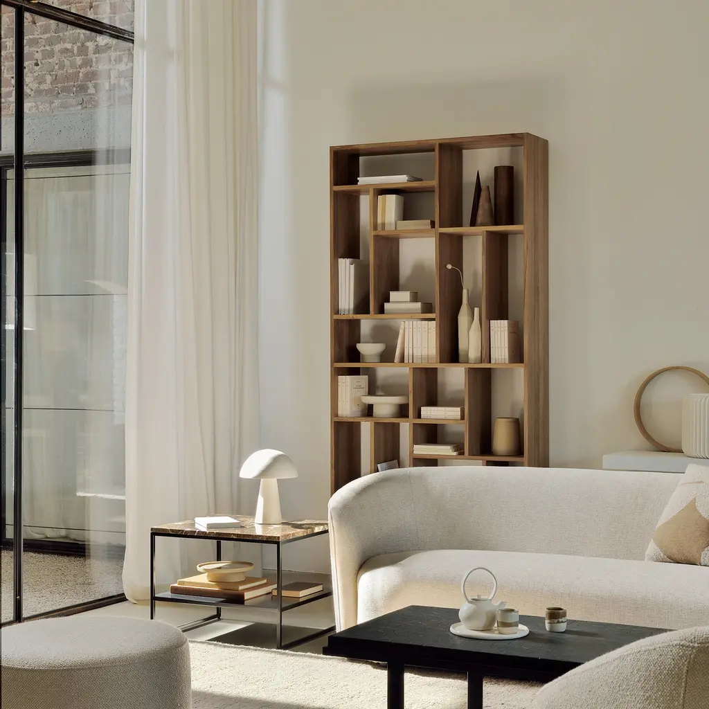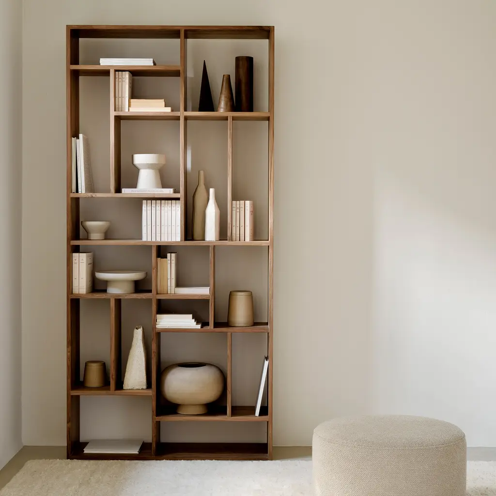 Ethnicraft’s M Rack takes inspiration from the iconic grid paintings of Dutch artist Piet Mondrian, translating his abstract compositions into practical, yet aesthetically pleasing storage solutions. This shelving unit, crafted from teak without any finishing or protective treatment, showcases the raw, natural beauty of the wood, enhancing the overall visual appeal of the piece. The M Rack is not just a storage unit; it’s a versatile piece of art that can transform any space. Whether used in a kitchen to display serving bowls and vases or in an entertainment area to showcase books and collectibles, this rack adds a touch of sophistication and style. Its design allows for multiple orientations – place it against a wall, use it as an innovative room divider, or lay it horizontally or vertically. The flexibility of the M Rack ensures it can meet a myriad of storage needs while maintaining its artistic integrity.