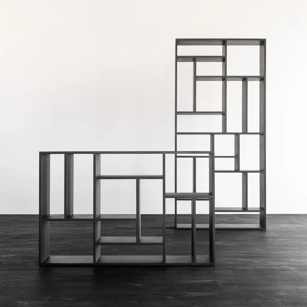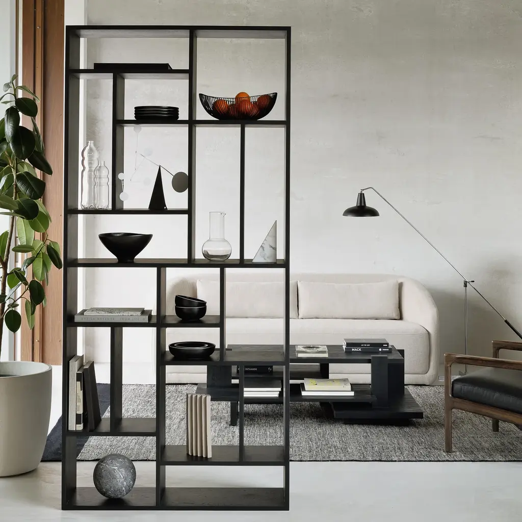 The beautiful and geometric M Shelf by Ethnicraft is a thoughtfully designed storage unit based on a Dutch painter’s famous grid of vertical and horizontal lines. Position against a wall to create your own display of artifacts, books, heirlooms, greenery or artwork to complete a room, or turn horizontally on its side to use as a simple room divider, defining space and style. Highlights