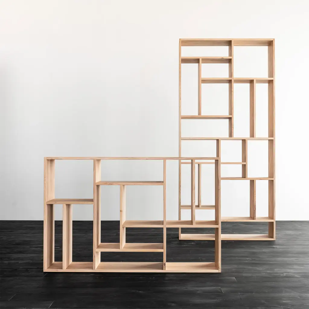 The beautiful and geometric M Shelf by Ethnicraft is a thoughtfully designed storage unit based on a Dutch painter’s famous grid of vertical and horizontal lines. Position against a wall to create your own display of artifacts, books, heirlooms, greenery or artwork to complete a room, or turn horizontally on its side to use as a simple room divider, defining space and style. Highlights