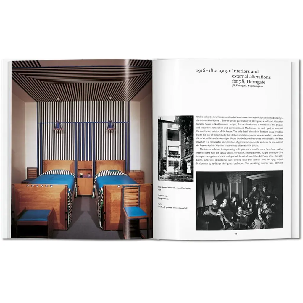 Published by Taschen, Mackintosh provides a compact insight into the career of the Scottish architect Charles Rennie Mackintosh (1868–1928), who was one of the earliest pioneers of avant-garde and modern architecture, furniture and graphic design. Written by English design historians Charlotte & Peter Fiell, the book is part of Taschen's Basic Architecture series that presents life and work of internationally renowned architects with approximately 120 photographs, sketches and drafts. The series has been edited by German art historian Peter Gössel. The work of Charles Rennie Mackintosh merged Scottish tradition, modern function, and Japanese elegance into a unique oeuvre across architecture and design. A key proponent of the turn-of-the-century Glasgow Style, Mackintosh also influenced Art Nouveau across Europe with his bold yet lyrical repertoire of vivid lines, elegant proportions, and natural motifs.