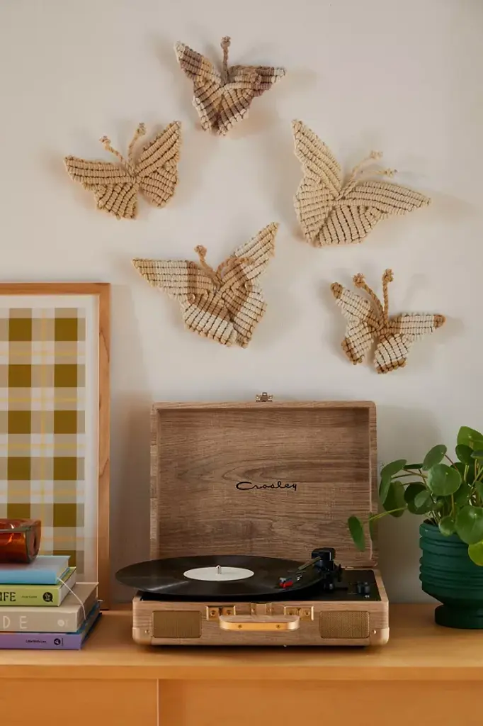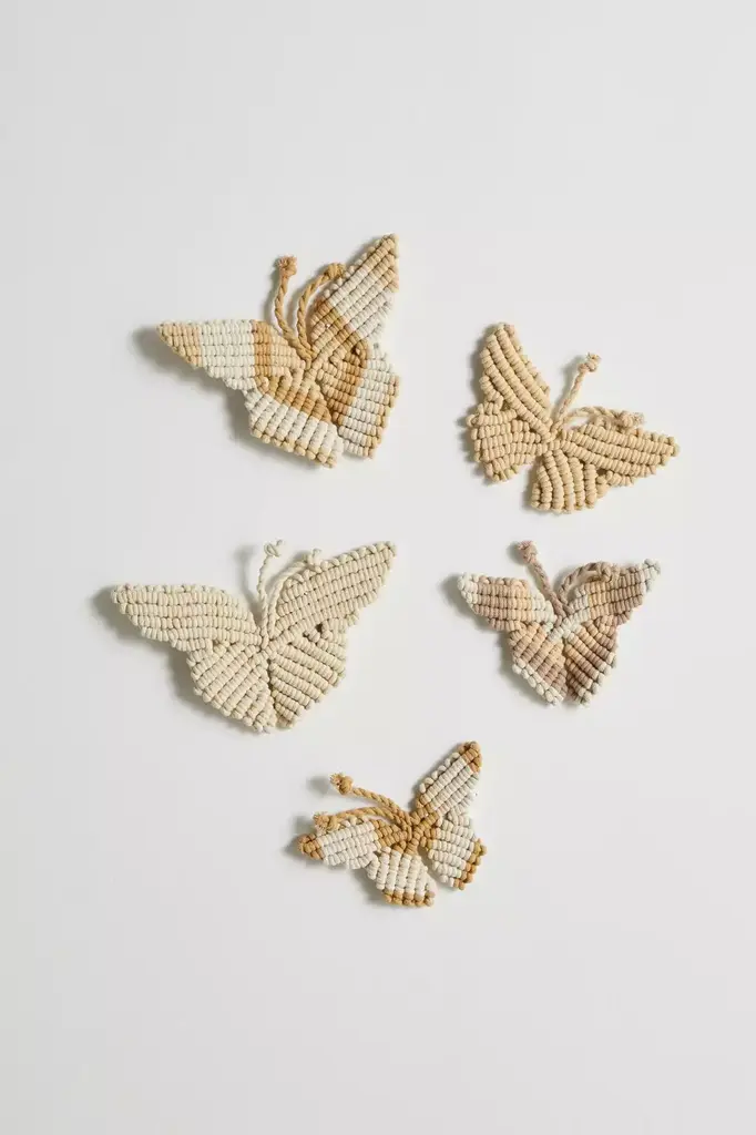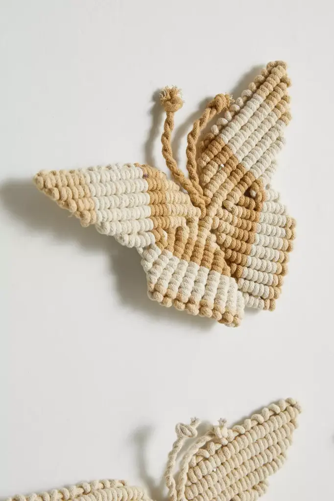Let your décor flutter when you display this set of macrame wall hangings. Shaped like retro-cool butterflies in rich tones we love, this wall hanging set infuses your space with a whimsical flair. Available exclusively at Urban Outfitters.