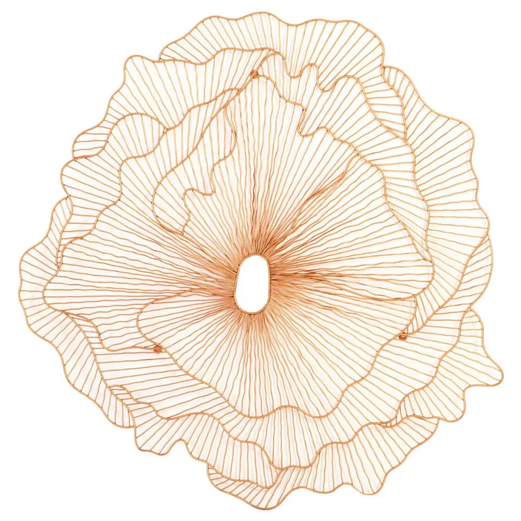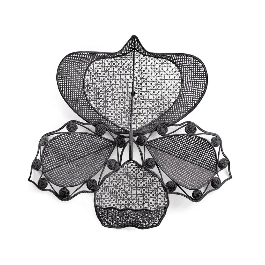 Macranta by Cristina Celestino. Materials: Fibers from Jipi palm leaves fibers. Technique: Hand-woven with natural fibers in Colombia. Natural dyed. Dimensions: W 100 x H 100 cm Available in colors: Raw natural, purple-red, black grey, rose dustThe Macranta wall decoration is inspired by Colombia’s largest orchid, the Coryanthes macrantha. These flowers only grow high above the ground in “ant-garden” nests built in the crown of trees. This association with ants allows them to produce large blossoms, measuring up to 12.5 cm, all year long.Cristina Celestino’s artistic ode to this fascinating orchid is a spectacular eyecatcher in any room: its diameter measures one meter. Each ornamental flower is made by hand with the fibres of the Jipi palm, using different techniques including knotting, weaving and braiding. The result is a balanced composition of fine lace-like details and playful spirals – two decorative styles that are popular in northern Colombia’s traditional artisanry. Cristina Celestino is one of the most prolific contemporary Italian designers. Her products and interiors share a softness, often defined by curved lines, a love for pastel hues, and subtle links to Italy's rich design heritage. She graduated from the school of architecture at IUAV University of Venice in 2005 and started working as an interior and furniture designer.