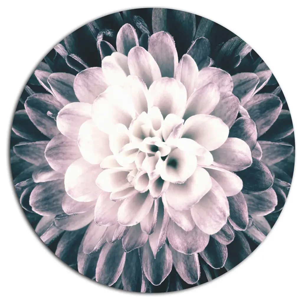 Bring Contemporary Abstraction to your home with this large Circle Metal wall art. This Macro Chrysanthemum Flower Metal Artwork makes it the focal point of any room or office. - White Gloss Coating ensures colors are extra vibrant with light reflection.- Aluminum grade Sheet Metal with 1 inch mounting frame on the back giving the illusion that the artwork is floating on the wall..- Mounting Brackets are included along with instructions.- High Quality Digital images are created directly into a glossy aluminum panel producing a stunning and captivating print into the glossy finish of the metal.- Water, Fire and Scratch resistant HD Aluminum panels.- Looks better than any photo paper and guaranteed to last at least 20 years- Easy to clean with a microfiber cloth. Colors are far superior to regular Canvas Art. - Easy to Hang