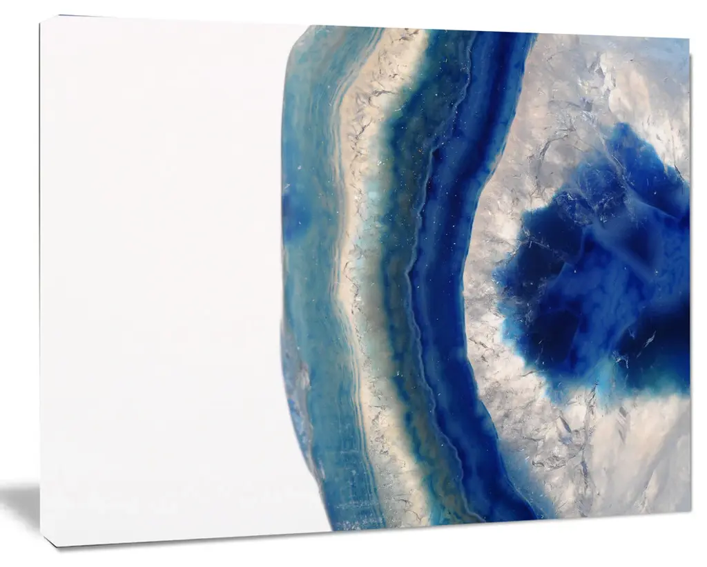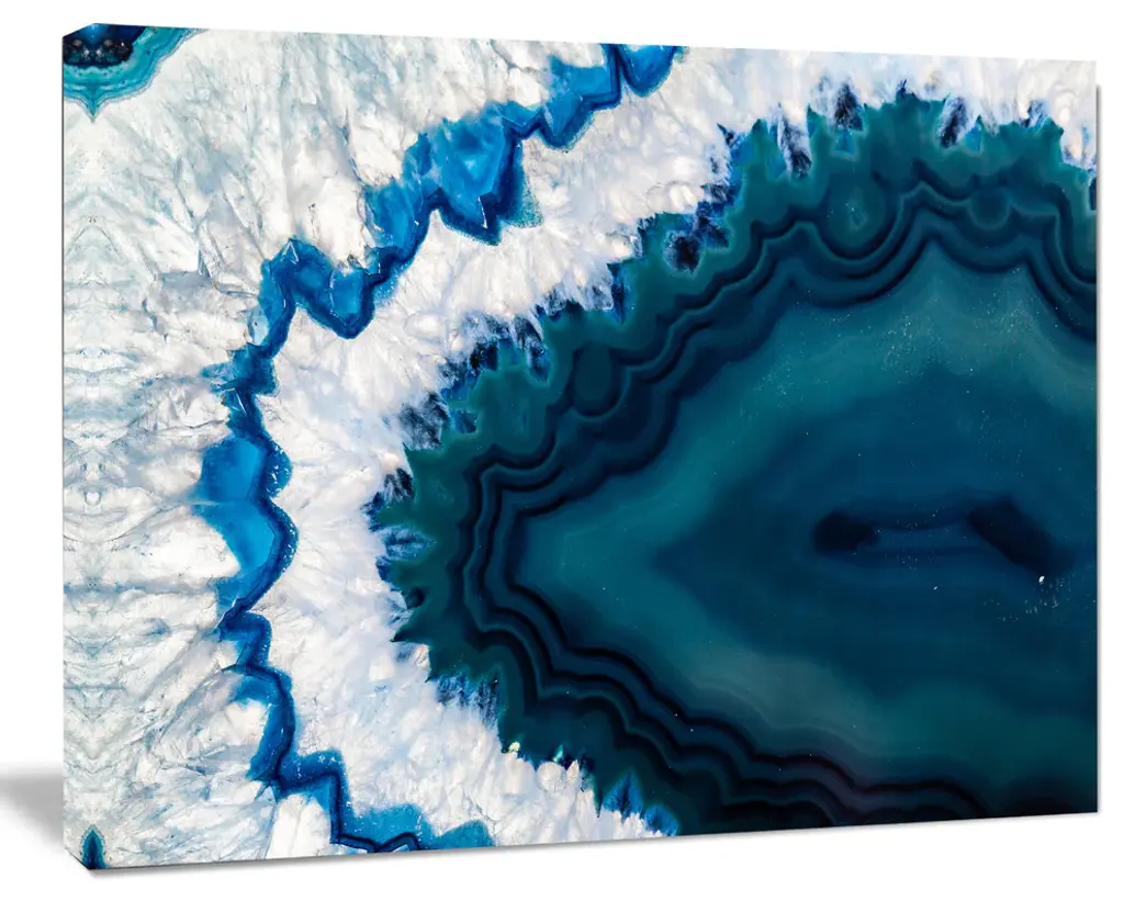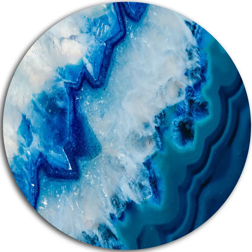 Bring Contemporary Abstraction to your home with this large Circle Metal wall art. This Macro of Blue Agate Stone Metal Artwork makes it the focal point of any room or office. - White Gloss Coating ensures colors are extra vibrant with light reflection.- Aluminum grade Sheet Metal with 1 inch mounting frame on the back giving the illusion that the artwork is floating on the wall..- Mounting Brackets are included along with instructions.- High Quality Digital images are created directly into a glossy aluminum panel producing a stunning and captivating print into the glossy finish of the metal.- Water, Fire and Scratch resistant HD Aluminum panels.- Looks better than any photo paper and guaranteed to last at least 20 years- Easy to clean with a microfiber cloth. Colors are far superior to regular Canvas Art. - Easy to Hang