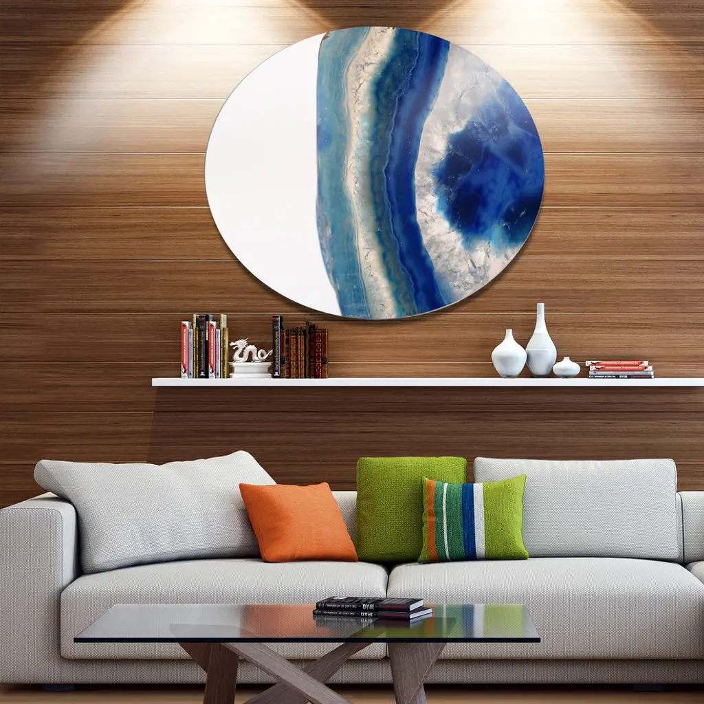 Macro Of Blue Agate Stone, Abstract Round Metal Wall Art, 23"