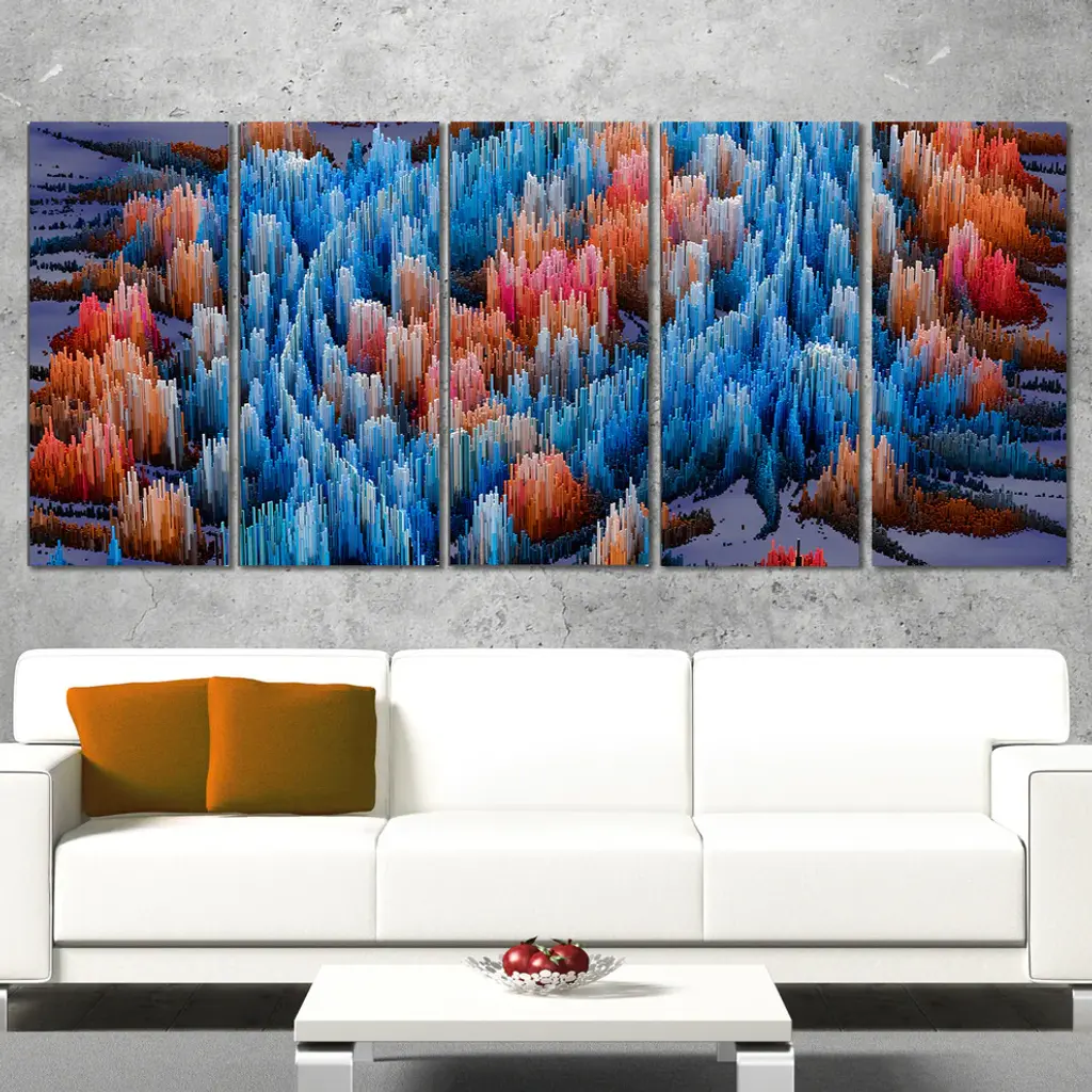 "Macro Render Structure, Blue And Red" Canvas Print, 5 Panels, 60"x28"