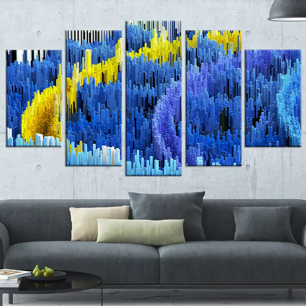 "Macro Render Structure, Blue And Yellow" Canvas Print, 5 Panels, 60"x32"