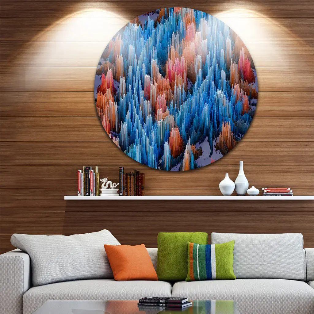 Bring Contemporary Abstraction to your home with this large Circle Metal wall art. This Macro Render Structure Blue Red Metal Artwork makes it the focal point of any room or office. - White Gloss Coating ensures colors are extra vibrant with light reflection.- Aluminum grade Sheet Metal with 1 inch mounting frame on the back giving the illusion that the artwork is floating on the wall..- Mounting Brackets are included along with instructions.- High Quality Digital images are created directly into a glossy aluminum panel producing a stunning and captivating print into the glossy finish of the metal.- Water, Fire and Scratch resistant HD Aluminum panels.- Looks better than any photo paper and guaranteed to last at least 20 years- Easy to clean with a microfiber cloth. Colors are far superior to regular Canvas Art. - Easy to Hang