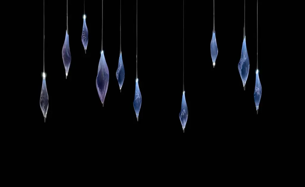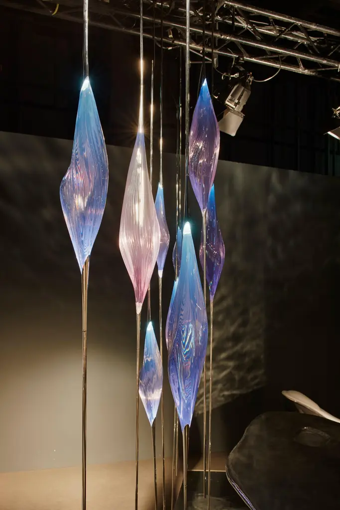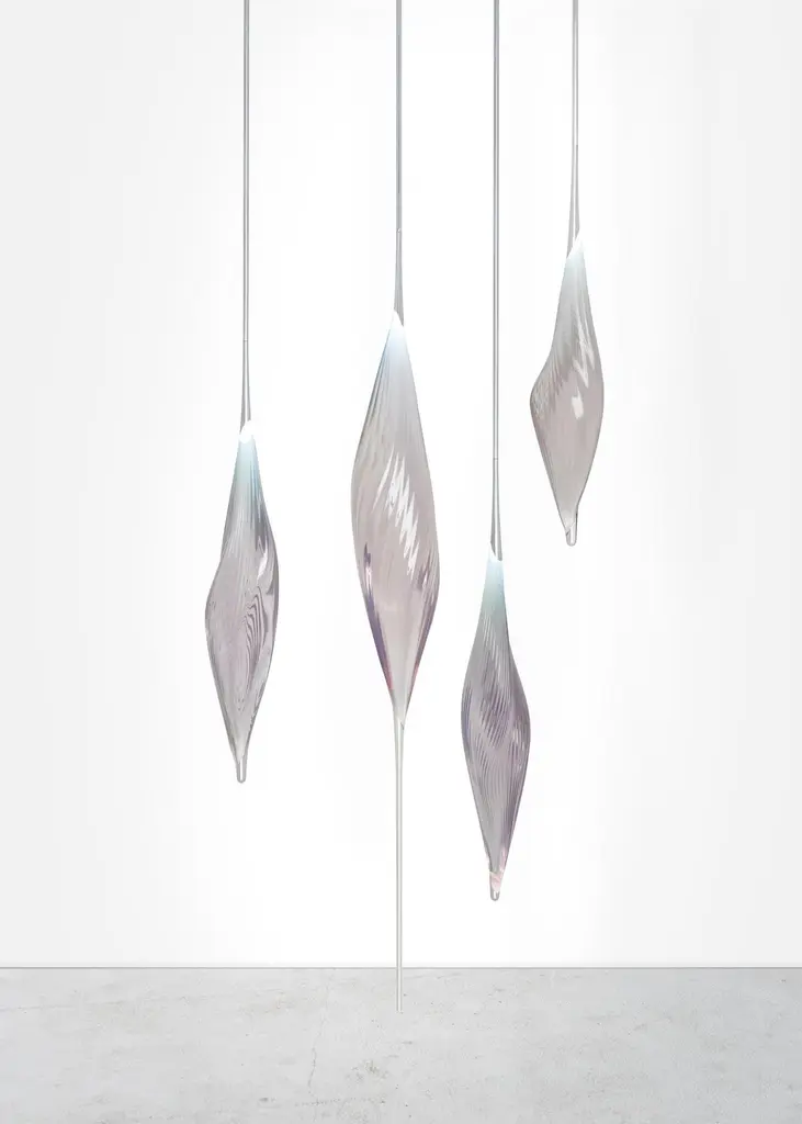 MAD Architects have reinvigorated this favourite of mid-20th century design, the floor-ceiling suspension light. The drooping ridged surface of the PU and stainless steel shade conveys an alien Chrysalis, protecting a creature in a state of metamorphosis.The lights can be ordered in individual units or as a set (mix and match). The suspension lights come in three sizes: large ($5000 each), medium ($4000 each) and small ($3000 each). The lights can be set up in 2 ways: one is floor-to-ceiling (with “tails” in the end), the other is just hanging light set (without the “tails” in the end). The dimension of the three individual sizes are:Small: 4.25” W x 4.84” D x 28.27” H Medium: 4.8” W x 6.46” D x 34” H Large: 6.38” W x 6.89” D x 39.76” H It is made of Polyurethane and it is very lightweight.The MAD Martian collection began with a question: What would the Chinese colonization of a Martian planet look like? This naturally led to more questions such as at what point does survival stop and architecture begin? Once survival is assured, what memory of Earth or love for their new home would these interplanetary colonizers recreate first? The MAD Martian collection is the result of Ma Yansong’s meditation on these issues.Ma is famed for his design philosophy of ‘Shanshui City’, which integrates elements of traditional Chinese landscape design and painting into large-scale urban architecture. The resulting forms are closely tied to elements of the natural environment, conveying both elegant and gnarly lines. With this collection, M continues to employ the Shanshui City design philosophy - putting the contours of the natural environment front and center of the design language - but transplanting it into a science fiction narrative.Ma conceived of the collection as being Noah Beyond The Ark. Timber, used to build the ark, saved the great Old Testament patriarch from the deluge. In MAD Martian, Ma reasoned that in the future, highly advanced materials will catapult those few lucky chosen ones into safe extra-terrestrial environments, beyond the apocalypse. To convey this idea, the first seven pieces in the collection were made using a combination of old and new techniques: advanced machining with hand-finishing and cutting-edge form making finished with artisanal detailing.