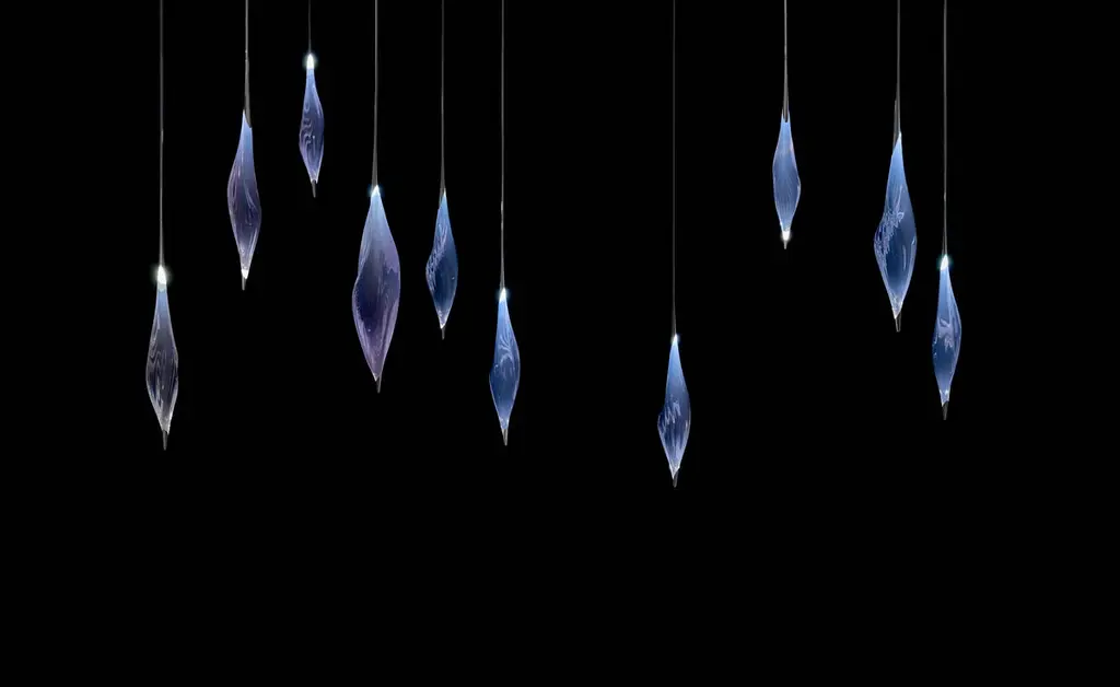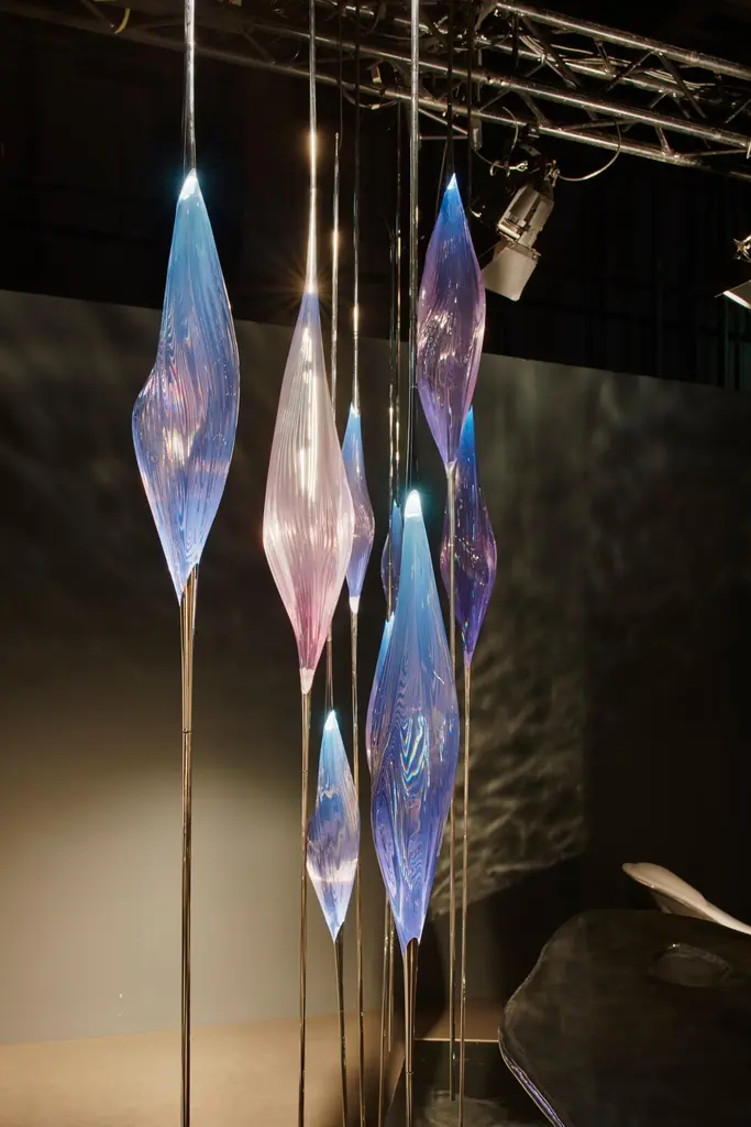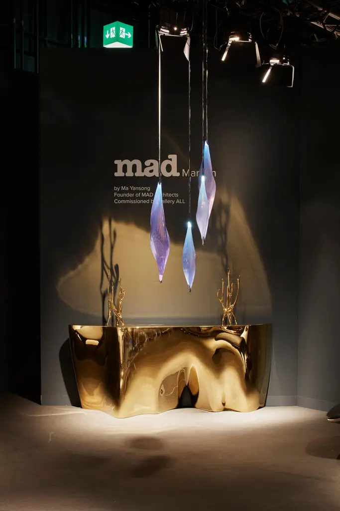 MAD Architects have reinvigorated this favourite of mid-20th century design, the floor-ceiling suspension light. The drooping ridged surface of the PU and stainless steel shade conveys an alien Chrysalis, protecting a creature in a state of metamorphosis.The lights can be ordered in individual units or as a set (mix and match). The suspension lights come in three sizes: large ($5000 each), medium ($4000 each) and small ($3000 each). The lights can be set up in 2 ways: one is floor-to-ceiling (with “tails” in the end), the other is just hanging light set (without the “tails” in the end). The dimension of the three individual sizes are:Small: 4.25” W x 4.84” D x 28.27” H Medium: 4.8” W x 6.46” D x 34” H Large: 6.38” W x 6.89” D x 39.76” H It is made of Polyurethane and it is very lightweight.The MAD Martian collection began with a question: What would the Chinese colonization of a Martian planet look like? This naturally led to more questions such as at what point does survival stop and architecture begin? Once survival is assured, what memory of Earth or love for their new home would these interplanetary colonizers recreate first? The MAD Martian collection is the result of Ma Yansong’s meditation on these issues.Ma is famed for his design philosophy of ‘Shanshui City’, which integrates elements of traditional Chinese landscape design and painting into large-scale urban architecture. The resulting forms are closely tied to elements of the natural environment, conveying both elegant and gnarly lines. With this collection, M continues to employ the Shanshui City design philosophy – putting the contours of the natural environment front and center of the design language – but transplanting it into a science fiction narrative.Ma conceived of the collection as being Noah Beyond The Ark. Timber, used to build the ark, saved the great Old Testament patriarch from the deluge. In MAD Martian, Ma reasoned that in the future, highly advanced materials will catapult those few lucky chosen ones into safe extra-terrestrial environments, beyond the apocalypse. To convey this idea, the first seven pieces in the collection were made using a combination of old and new techniques: advanced machining with hand-finishing and cutting-edge form making finished with artisanal detailing.