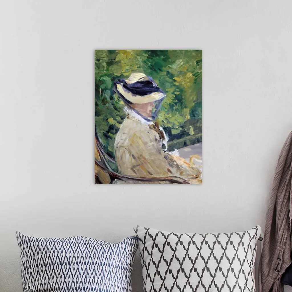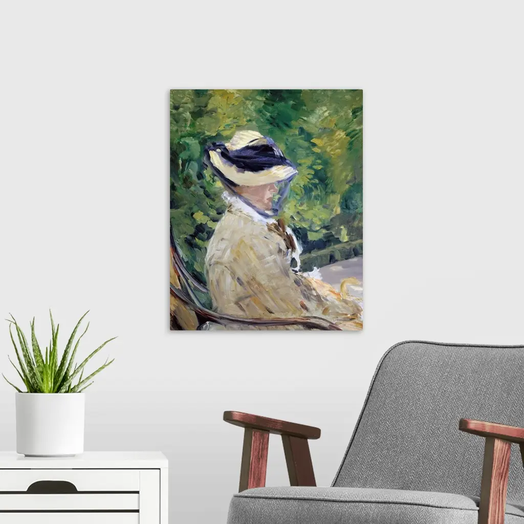 Despite the seemingly rapid brushwork and the summary treatment of detail, this painting was preceded by at least two drawings and an oil sketch. This is Manet's last portrait of his wife; it was painted at Bellevue, a suburb of Paris, where they spent the summer of 1880.