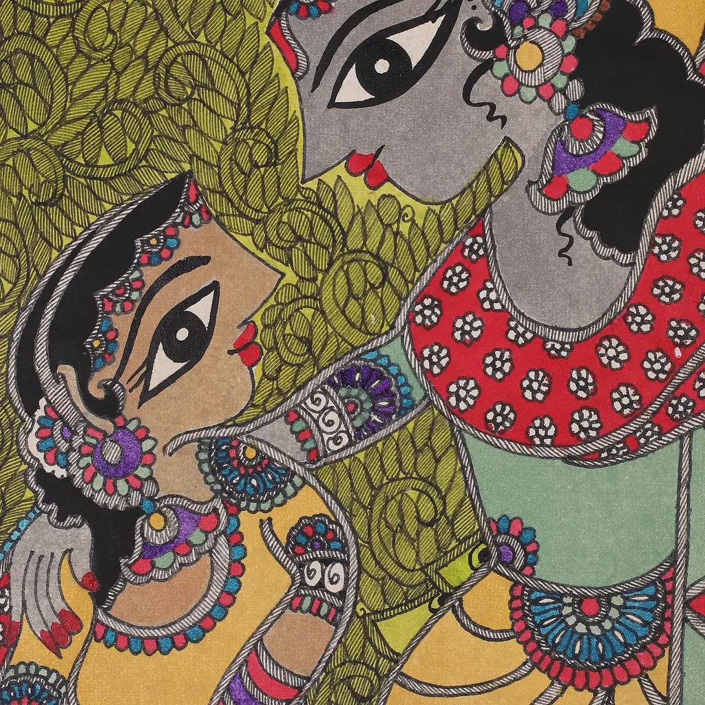 Madhubani Painting Of Hindu Deities Krishna And Radha- Radha And Krishna Divine Love