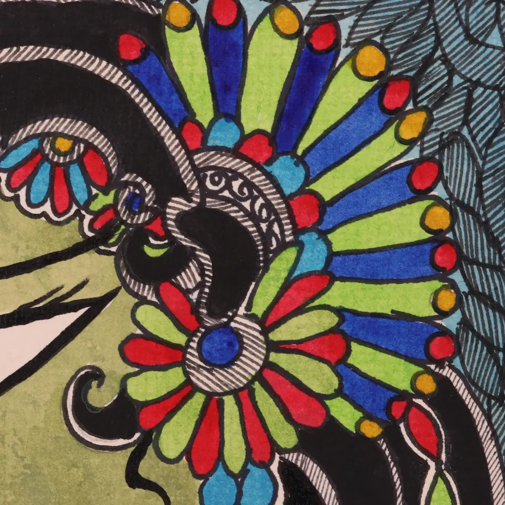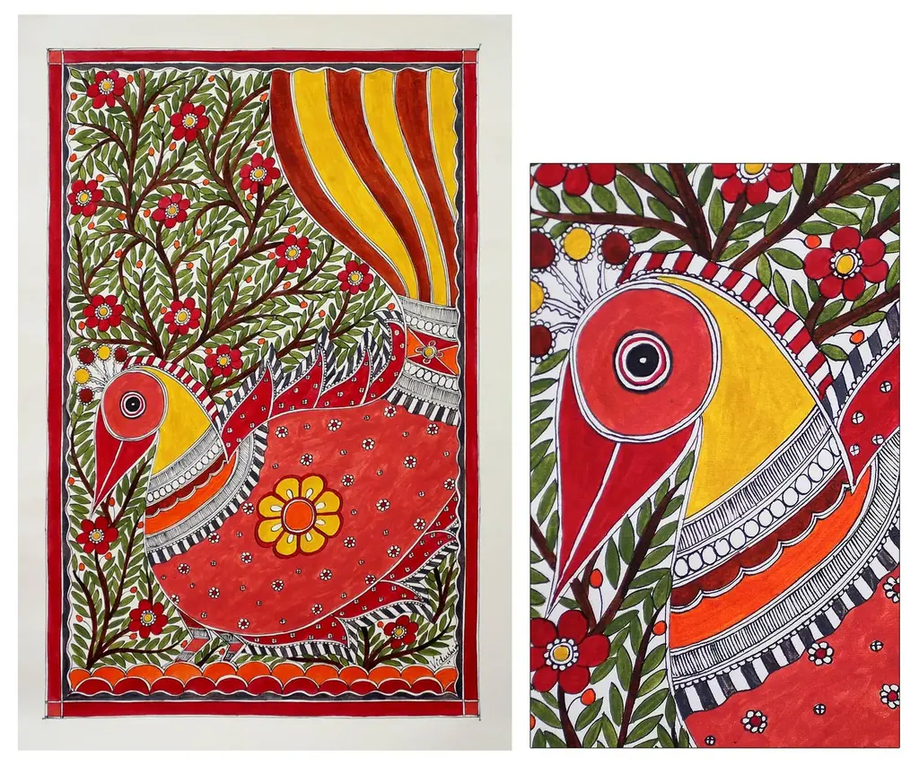 Madhubani Painting Of Woman On Handmade Paper From India- Conversation With Nature