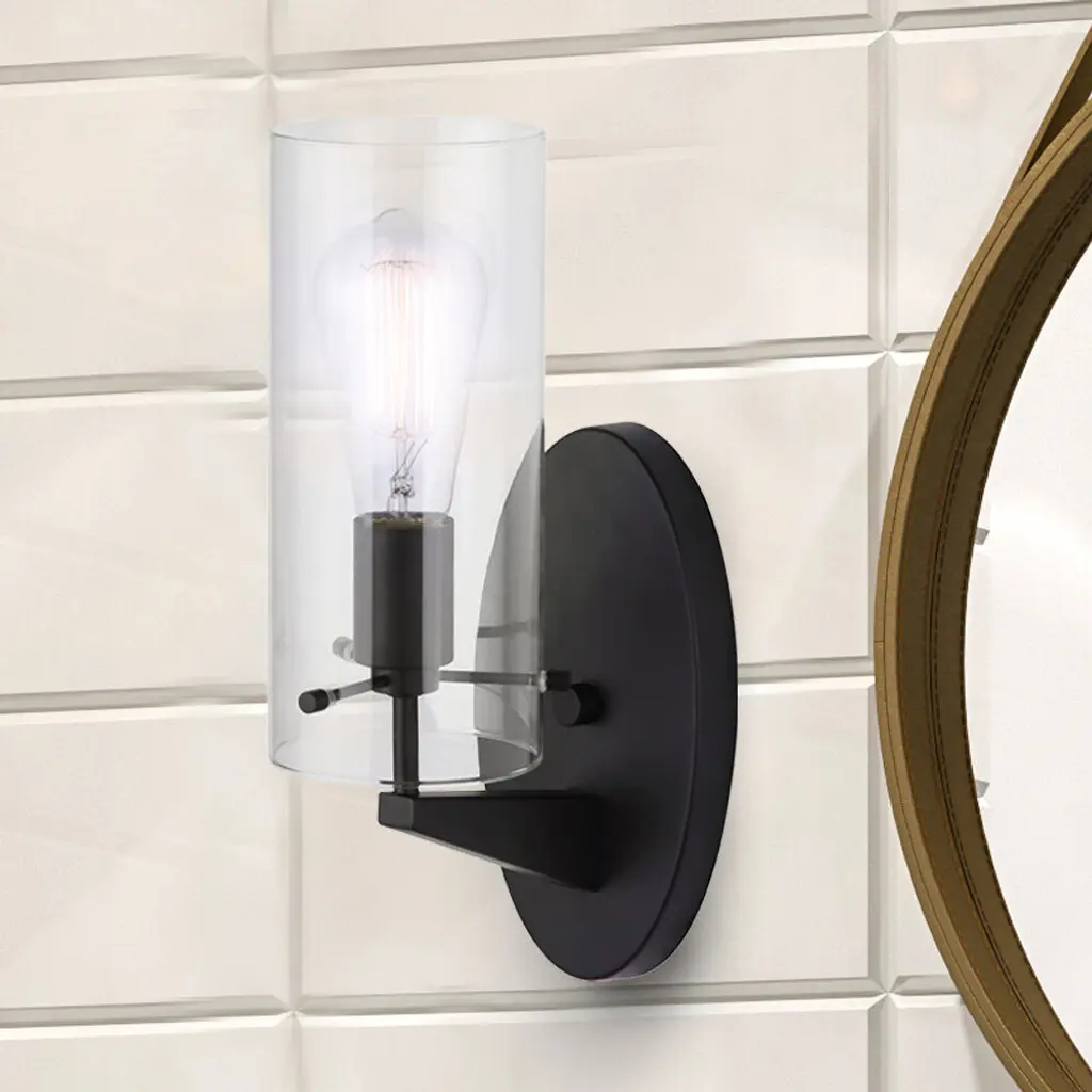 JONI, IVL759A01BK, MBK Color, 1 Lt Vanity, Clear Glass, 100W Type A, 4.5inch W x 13.125inch H x 6.5inch D, Easy Connect Included