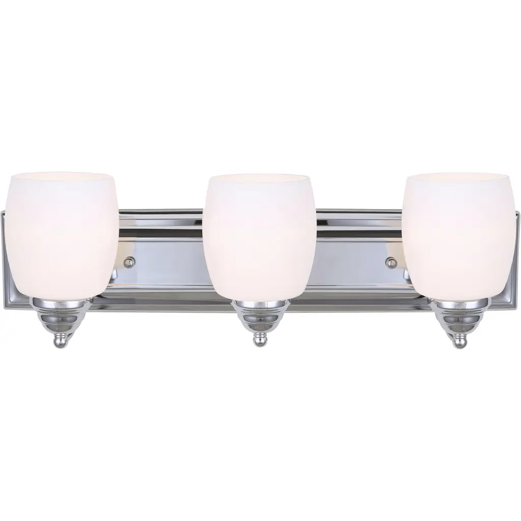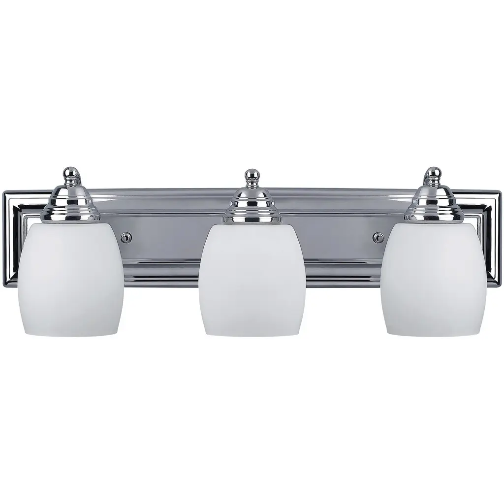 The elegant Griffin family with flat opal glass and reflective chrome finish will add clean bright light to your vanity. The 1, 2 and 3 light vanity can be mounted up or down.