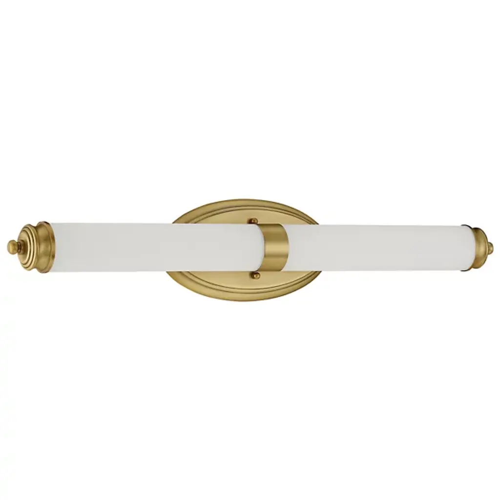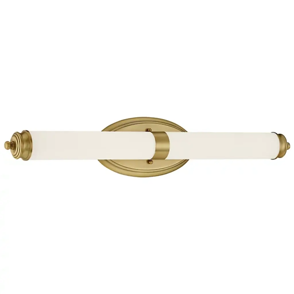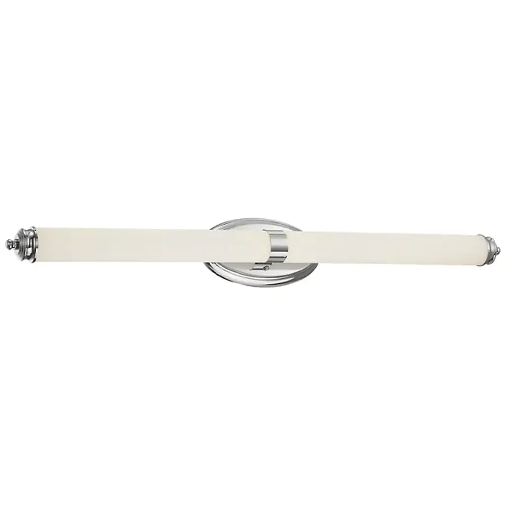 A refined and well proportioned accent with a vintage quality. The Madison LED Vanity Light from Access Lighting pairs strong lines and elegant flourishes to create a look that is at once minimalist and yet transcendent of easy definition or trend. It’s made with a dual dedicated LED light set that is mounted using a Metal framework with matching end caps. To create ambiance in a variety of bath and vanity uses, this fixture employs a pair of Opal Glass diffuser tubes. The total effect is one that welcomes people to sink mirrors and vanity tables with its even and vibrant light.