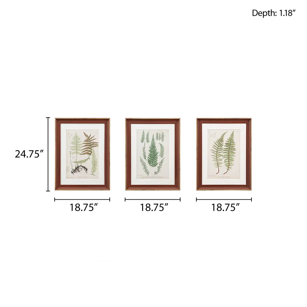 Madison Park Lady Fern Collection Botanical Illustration 3-Piece Framed Glass And Single Matted Wall Art Set - Green - Brown