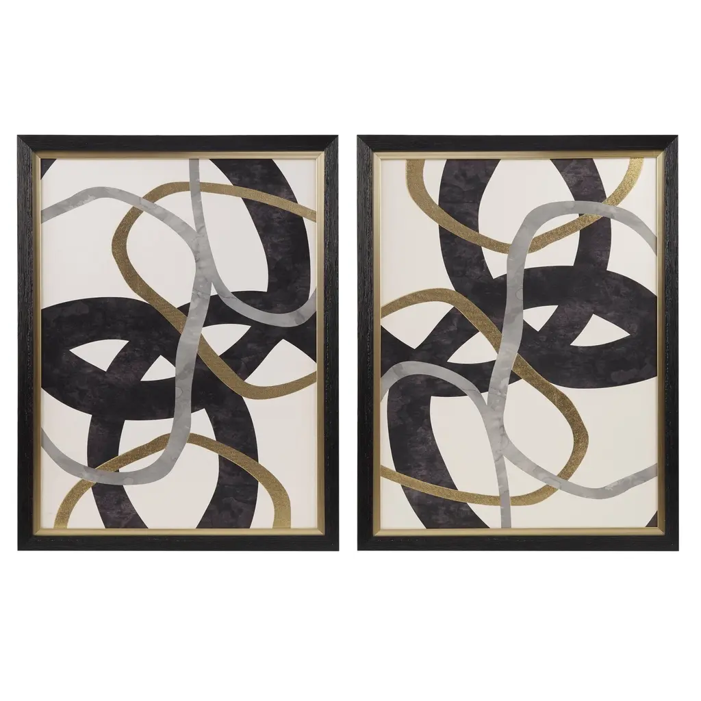 Add a bold artistic expression to your home with our Madison Park Moving Midas Gold Foil Abstract 2-piece Framed Canvas Wall Art Set. Each framed canvas flaunts an abstract pattern in striking black, grey, and gold hues; while the double moulding black frame and gold foil detailing adds rich dimension and a touch of glam for a modern and elevated update.Features:Dimensions: