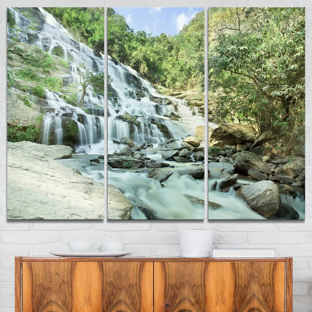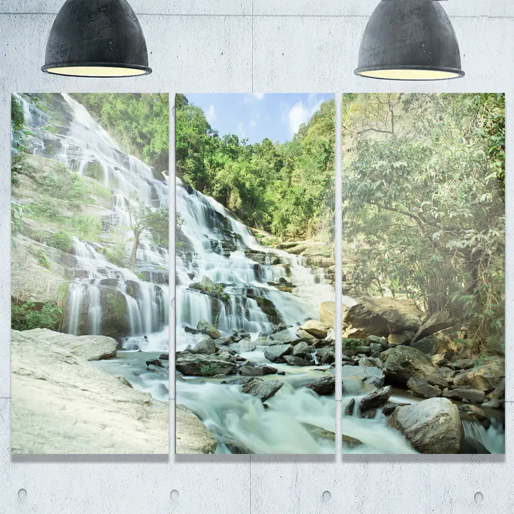 "Maeyar Waterfall In Rain" Photo Metal Wall Art, 3 Panels, 36"x28"