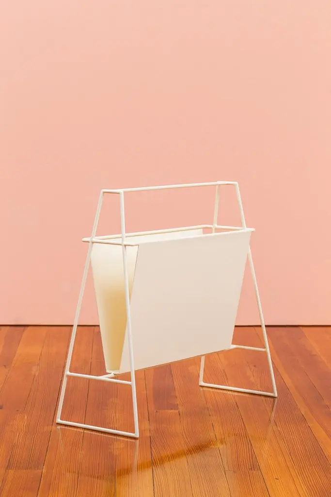 Magazine Rack by Sofia Alvarado1 of 3 limited editionMaterials: MetalDimensions: 86cm (H) x 32cm (W) x 32cm (D)FI is an ornamental artist who embodies the creative revelation of the sensitivity of the innate being, with uninhibited freedom by proposing a global universe between furniture, objects, scenery, sculpture, drawing, painting and letters. Inspired by the poetry that gives life, nature, the accuracy of imperfection, history, architecture, dreams, time and everything that educates beyond reason; transforms feelings and thoughts into stories to later create physically palpable pieces and scenarios by merging design with art, a principle that allows her to experiment with shapes, materials and color combinations, using all kinds of geometries, which manage to represent situations of an imagined reality. Sofia Alvarado, founder of Fi, is an architect and designer with the sensitivity necessary to recognize that sustainability is only possible where all actors prosper and human rights are respected, so the ideology of the study is based on the concept of Human Design, which promotes detailed work, integral design of things and efficiency on a human scale, in a tribute to Latin American hand made craft that has been suggested for years by the insecurity of ignorance. It uses technology but does not abandon the artisans, mainly it dignifies them and empowers, so that they appropriate their work to the fullest, and thus achieve luxury artisans. All pieces made in Fi are hand made in Panama by single / unique or limited edition, either under collection or to design to order.