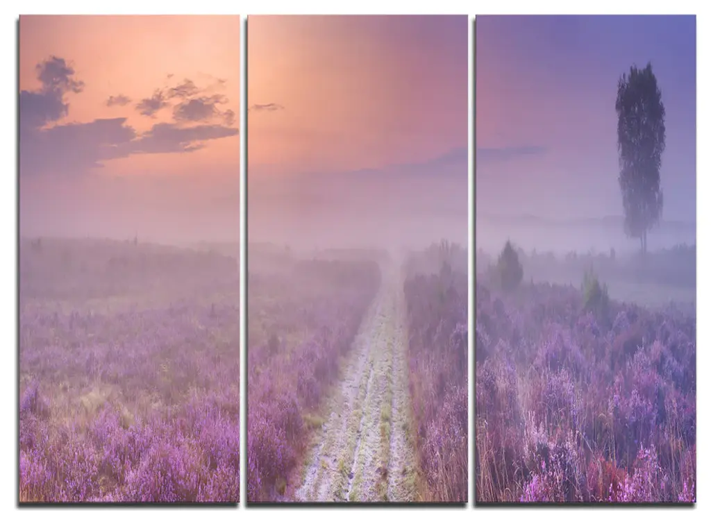 "Magic Pink Flowers On Mountains" Photo Metal Wall Art, 3 Panels, 36"x28"