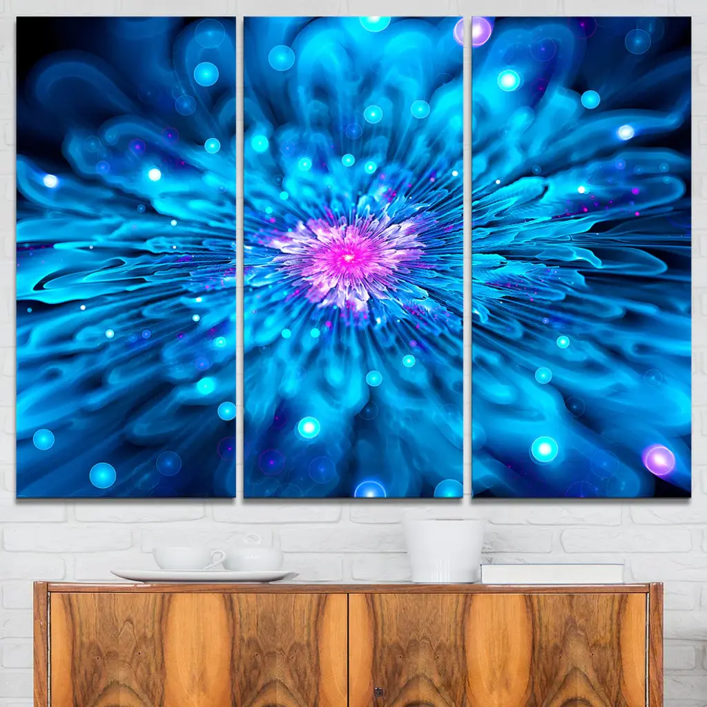 "Magical Blue Glowing Flower" Digital Canvas Print, 3 Panels, 36"x28"