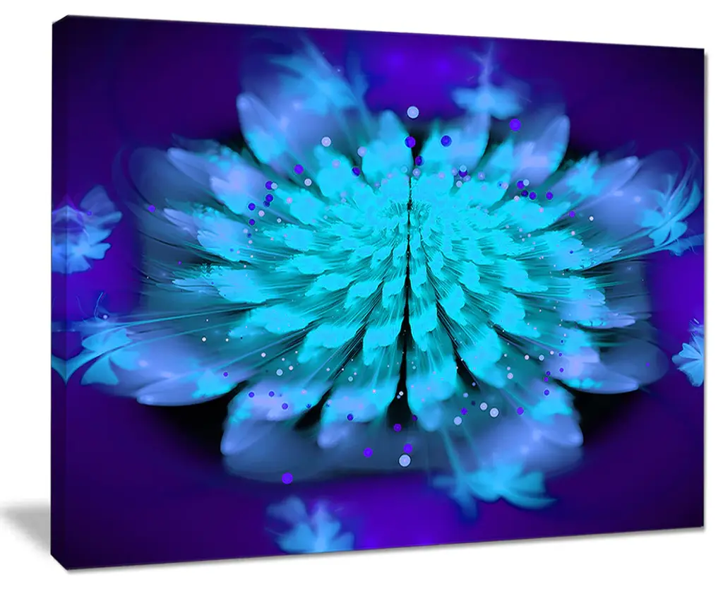 The Magical Blue Glowing Flower canvas art print is sure to make an impression on anyone who sees it. This artwork is gallery wrapped around a 1-inch solid wood frame and arrives carefully packaged and entirely ready to hang on the wall. Design Art only uses the highest resolution and pigments to ensure a crisp colorful print that is never faded or pixelated. This artwork is sure to be a conversation starter in any home or office.