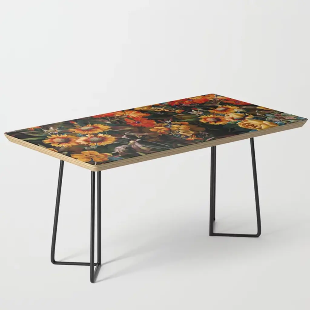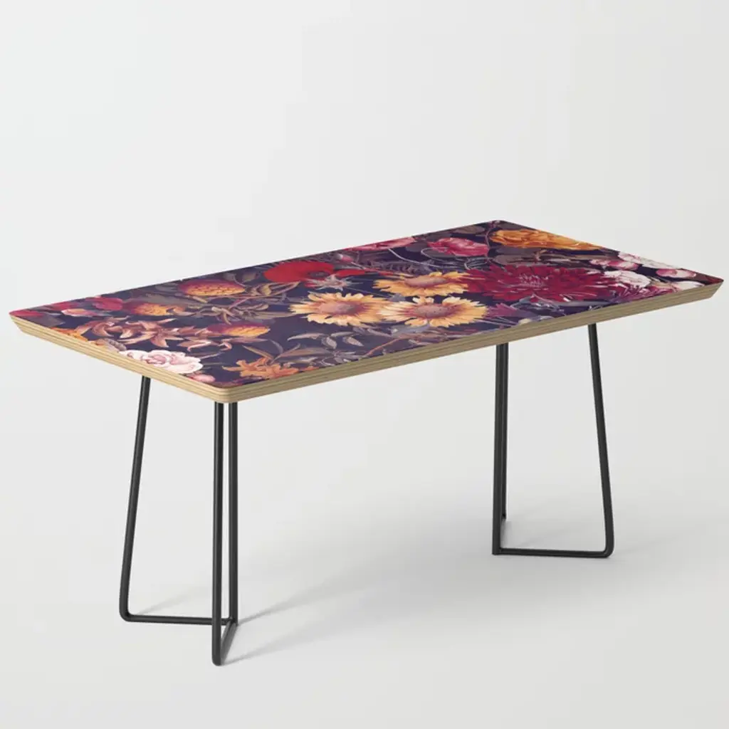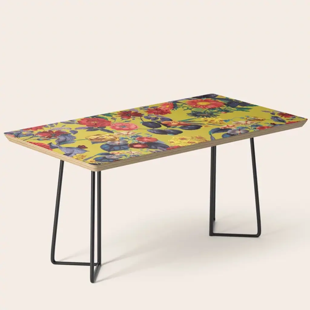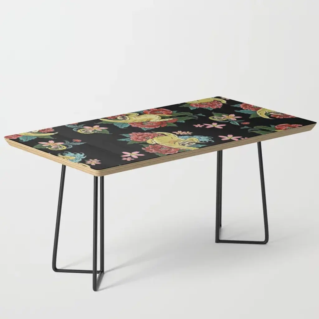 35.75" x 17.75" x 17" (H)Baltic birch table top with beveled edgeHigh quality print with satin finishSteel legs available in black or goldAssembly requiredEvery order is made just for youSHIPPING: Items are made to order and typically ship within 3-4 business days. Click here for more information about delivery options.Furniture sales are final. Click here for more information on returns.