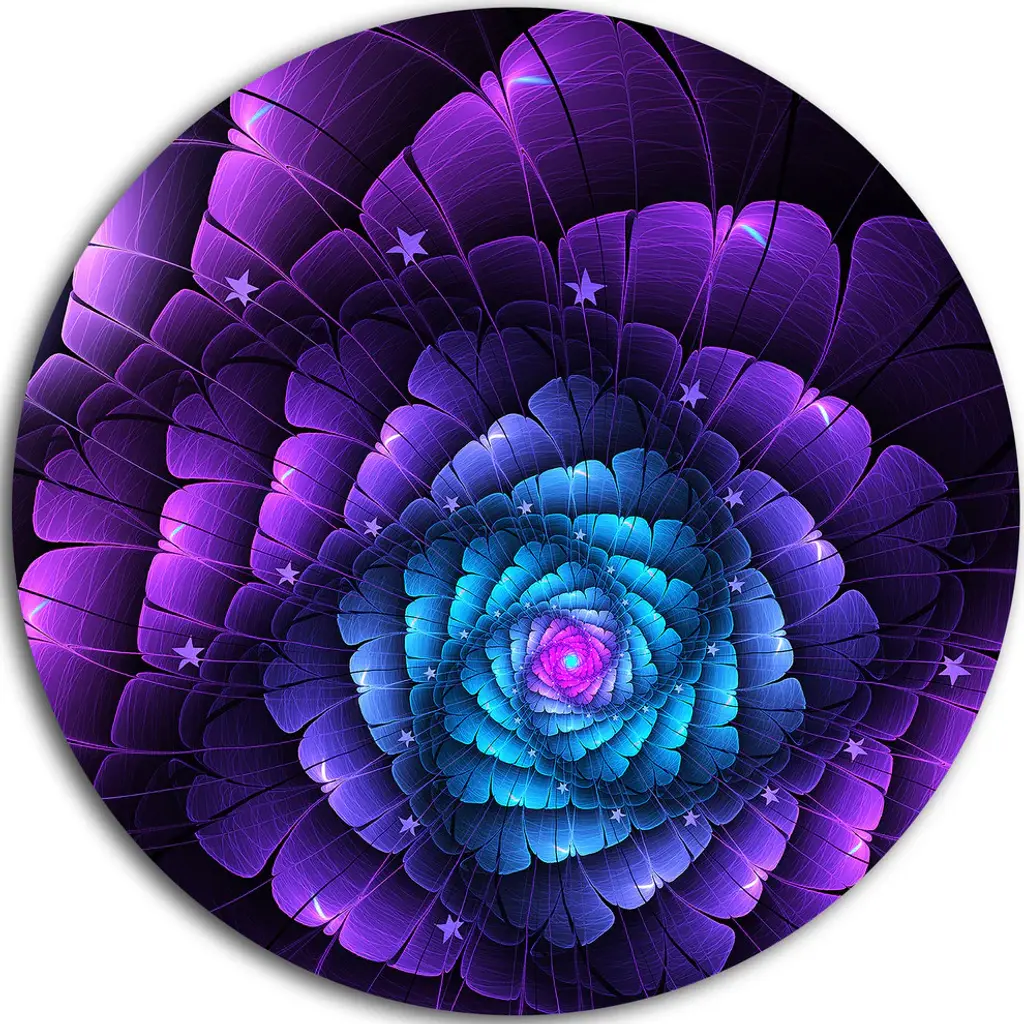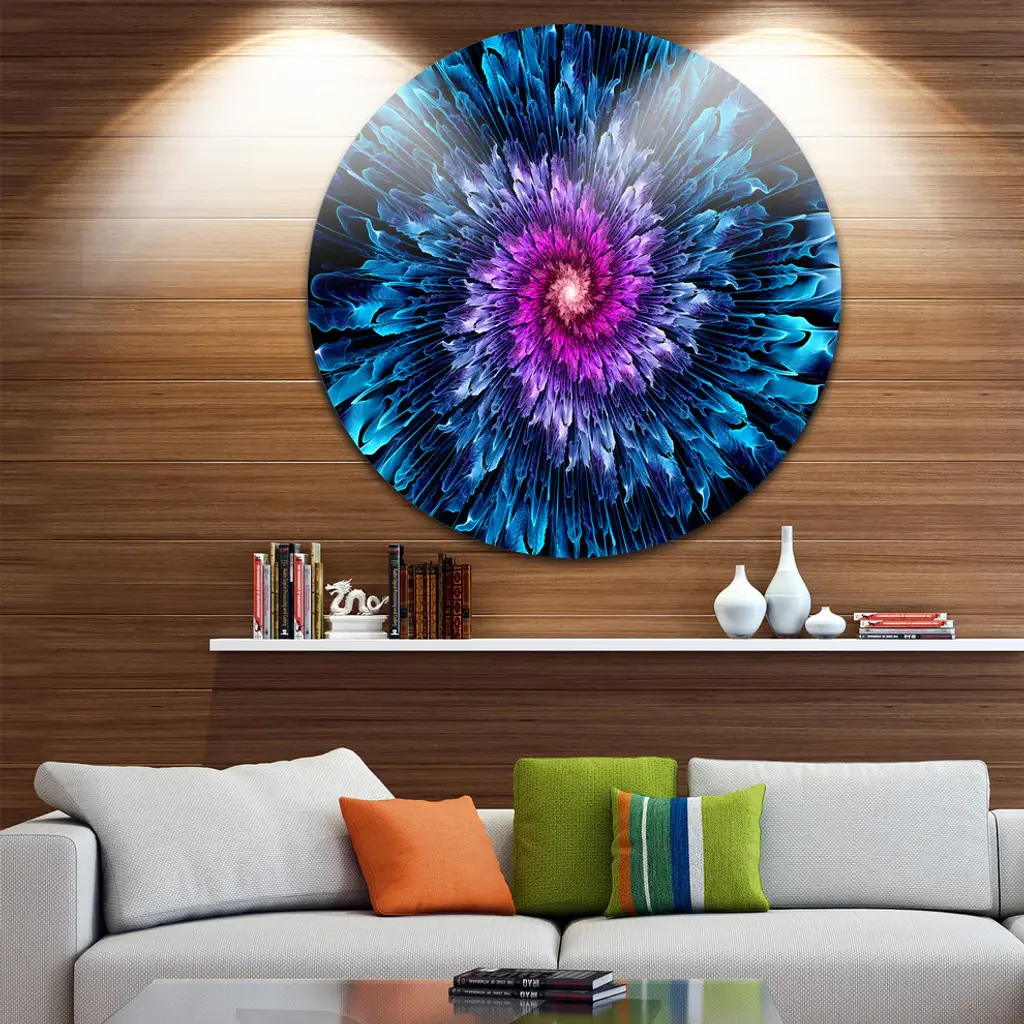 Magical Glowing Fractal Flower, Floral Large Disc Metal Wall Art, 23"