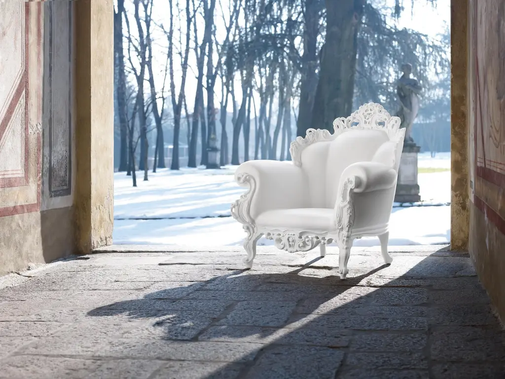 “I think many people will already know my “Proust armchair”. It is a romantic, baroque chair, on which an endless number of multi-coloured dots are hand-paint- ed using the pointillism technique. These dots cover the whole armchair, both the fabric and the wooden decorations.It’ s a re-design work. It is, in fact, a combination of a mock-antique armchair with a detail from a painting of a garden by French artist Signac. From 1978 onwards, the “Proust armchair” was produced in many versions, using different colours, ma- terials and dimensions, and was even made of ceramics and bronze. It travelled all around the world and was hosted in many museums.But now some truly revolutionary news, as a paradox comes true: the “Proust armchair” has now been transformed into an industrial rotational-moulded piece. Ladies and gentlemen, we bring you “ Magis Proust ”. This gem of technology and production brings new energy in its colours and atmospheres, making it a truly timeless object.”Alessandro Mendini