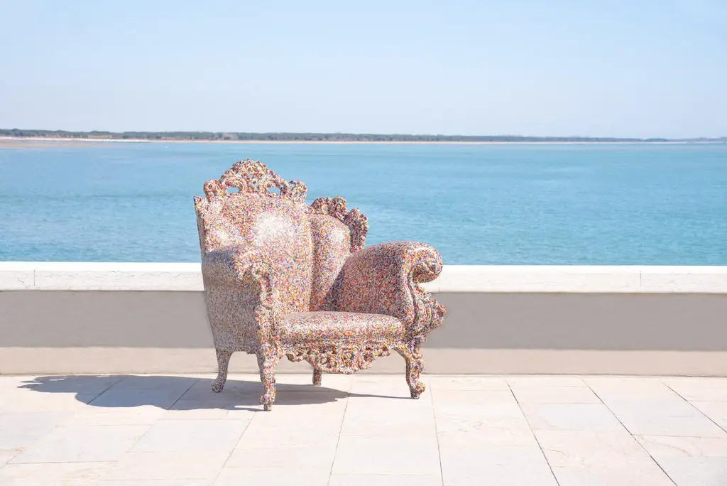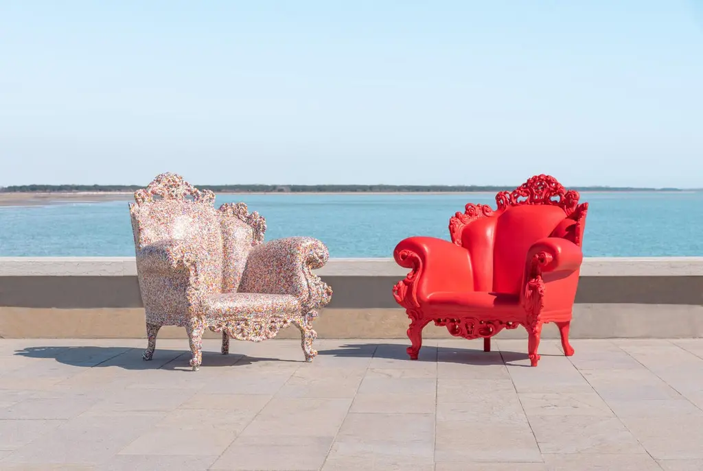 “I think many people will already know my “Proust armchair”. It is a romantic, baroque chair, on which an endless number of multi-coloured dots are hand-paint- ed using the pointillism technique. These dots cover the whole armchair, both the fabric and the wooden decorations.It’ s a re-design work. It is, in fact, a combination of a mock-antique armchair with a detail from a painting of a garden by French artist Signac. From 1978 onwards, the “Proust armchair” was produced in many versions, using different colours, ma- terials and dimensions, and was even made of ceramics and bronze. It travelled all around the world and was hosted in many museums.But now some truly revolutionary news, as a paradox comes true: the “Proust armchair” has now been transformed into an industrial rotational-moulded piece. Ladies and gentlemen, we bring you “ Magis Proust ”. This gem of technology and production brings new energy in its colours and atmospheres, making it a truly timeless object.”Alessandro Mendini